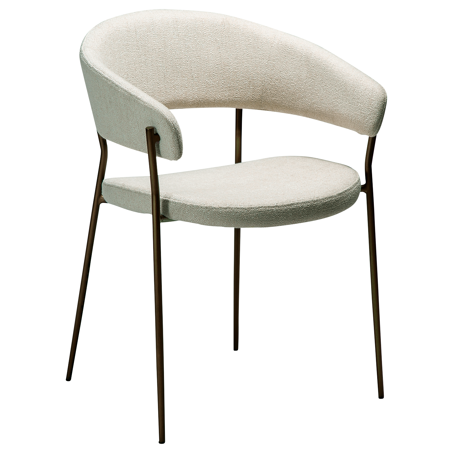 REBOOT armchair, simply beige boucle fabric with antique brass legs