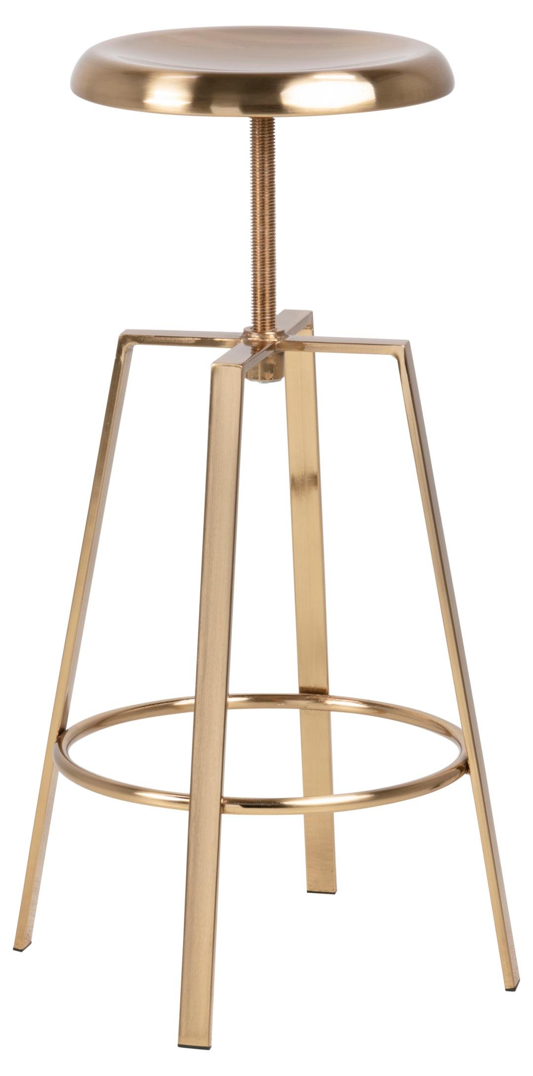 Goose bar stool without back, 4-star base gold brushed steel with footrest and screw bolt seat