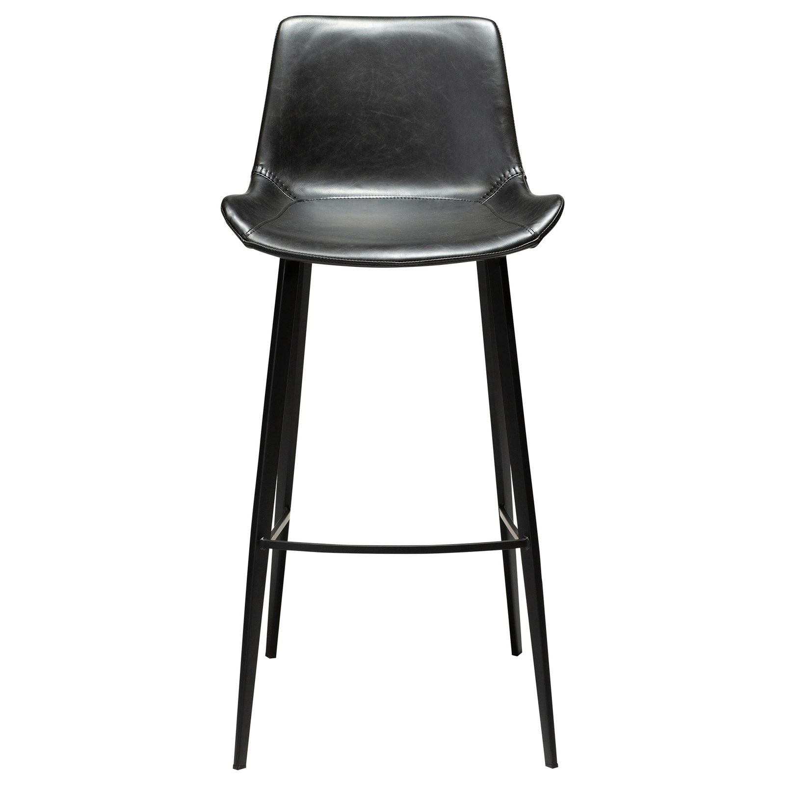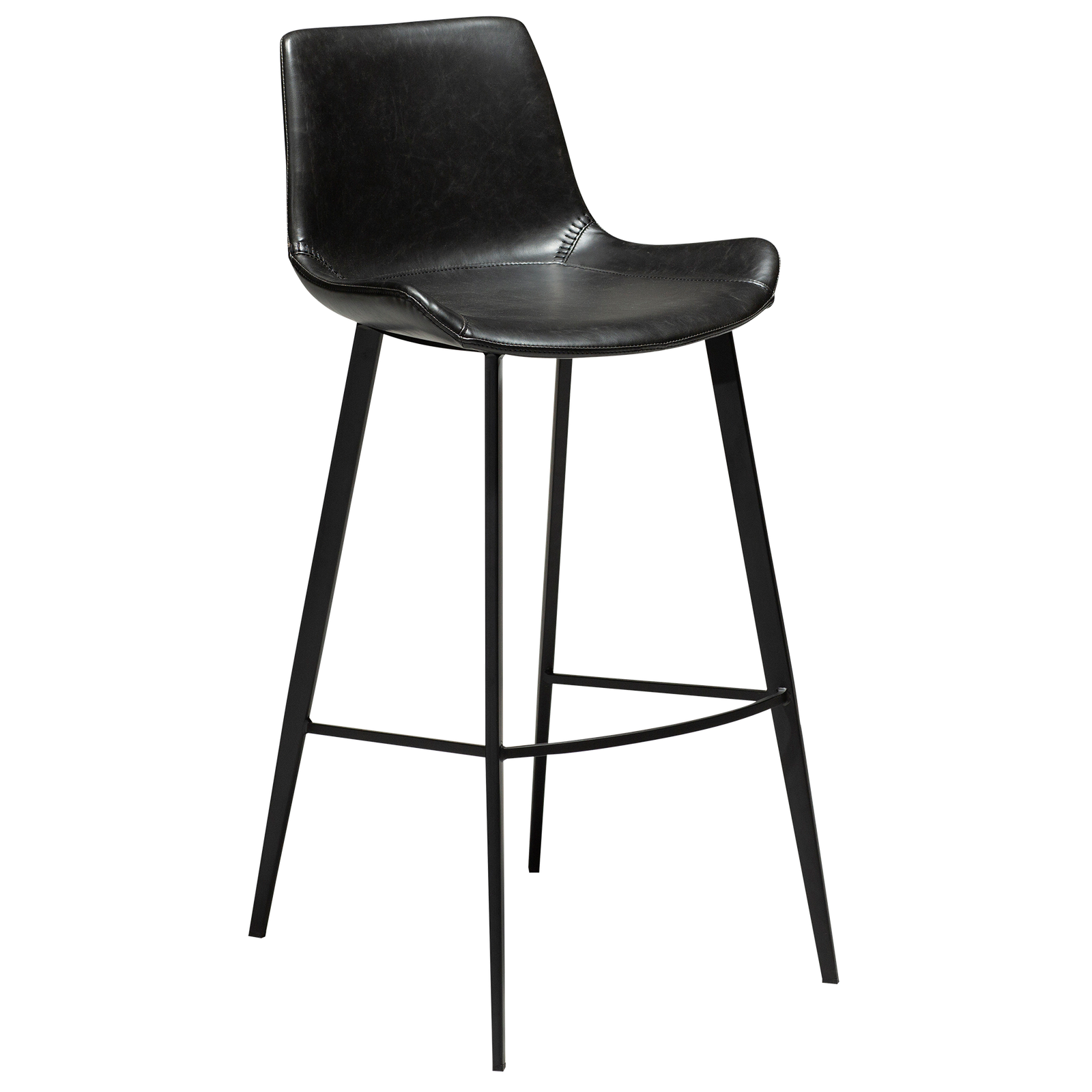 The HYPE bar stools feature an iconic scoop seat silhouette with baseball stitching. Black metal legs add to the modern look. The upholstered seat has great seating comfort and the chic design makes this bar stool a popular choice for both hospitality and home settings. The height of the bar stool suits a bar/counter top height around 100 cm.nTHE HYPE COLLECTION consists of chairs, armchairs, benches, bar stools, counter stools and office chairs.