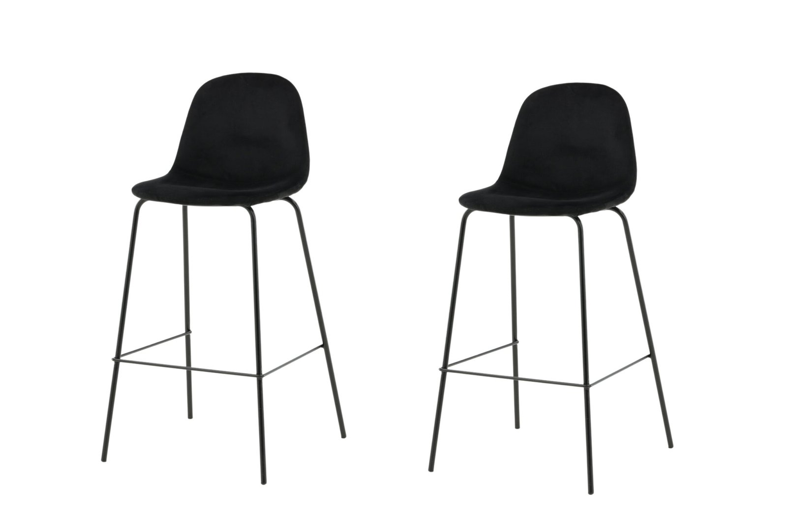 Don't have to compromise with neither design nor comfort with a bar stool from the Polar series! The design is well thought out with a fully dressed chair with a rounded back and seat in upholstered black velvet fabric and narrow leg stand in black powder coated metal with integrated footrest for extra comfort. Lighter assembly is required.