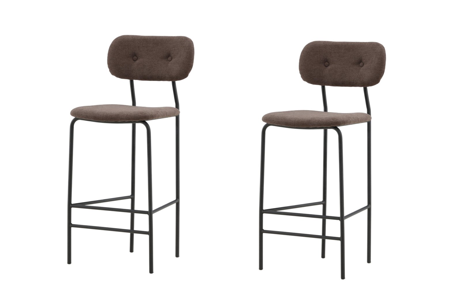 Ralf - the bar stool climbing the trend lists! This tasty bar stool in Scandinavian design will surely create an inviting eye -catcher in your home. With a pretty seat in upholstered, brown linen fabric, backrest with deep -adhesive buttons and a frame with integrated black steel footrest is as bare chair as comfortable to sit in. Furnish around the high dining table or at the bar in the kitchen and extend pleasant moments together !