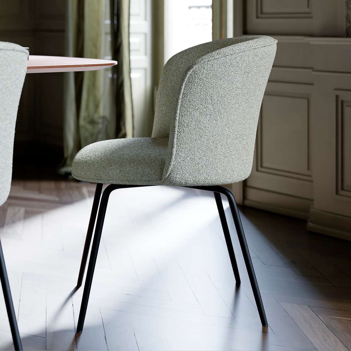 Pebble earth bouclé fabric with black legs