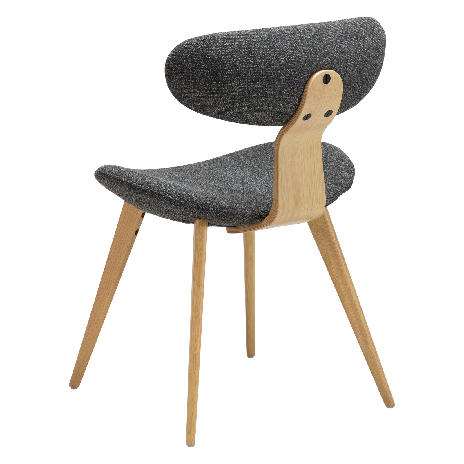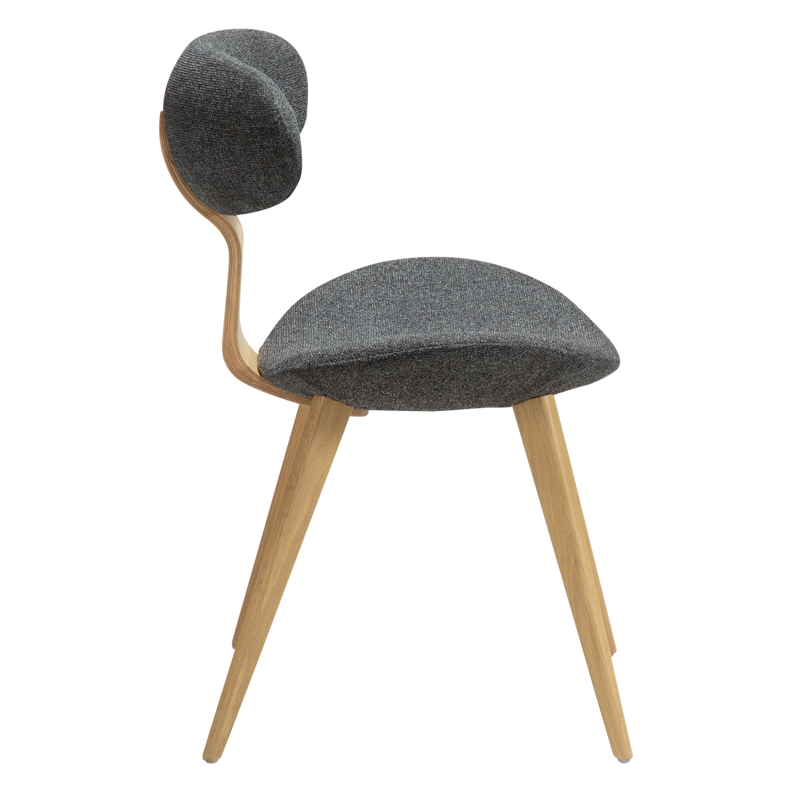 With a touch of futuristic elegance the BUCKLE chair by Jacob Amtorp offers a playful design. Its formpressed wooden 'wave' in the back supports a molded foam backrest whch brings a light and airy feel. The solid wood legs complete look of a beautifully craftet design that stands out. BUCKLE is available as a chair only.