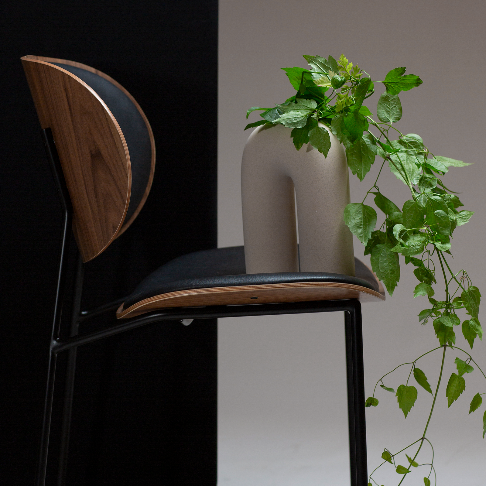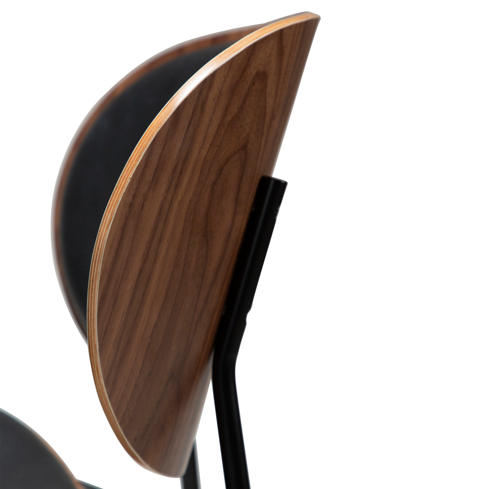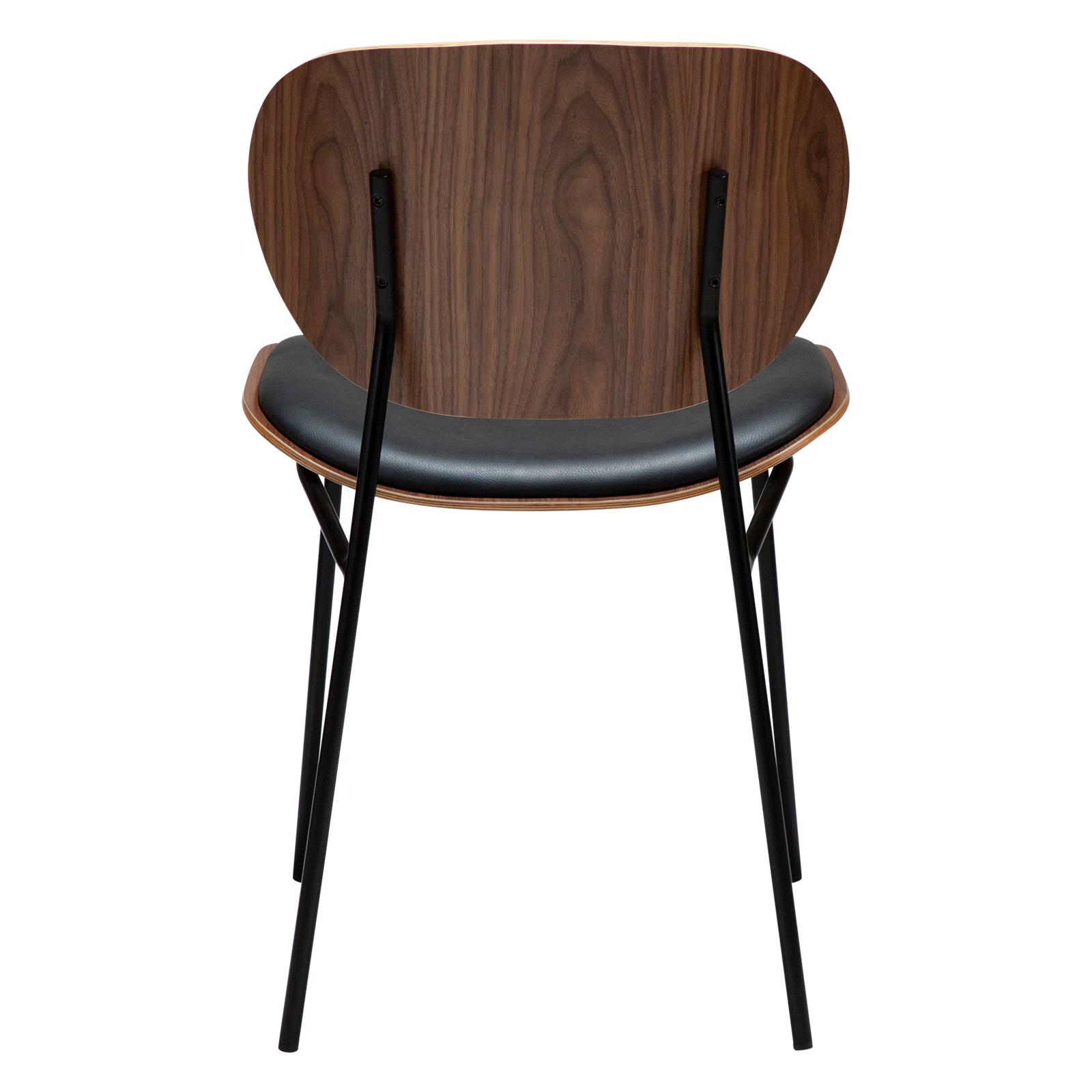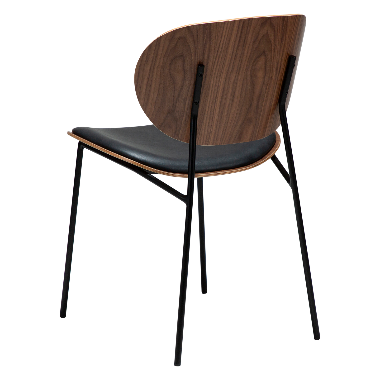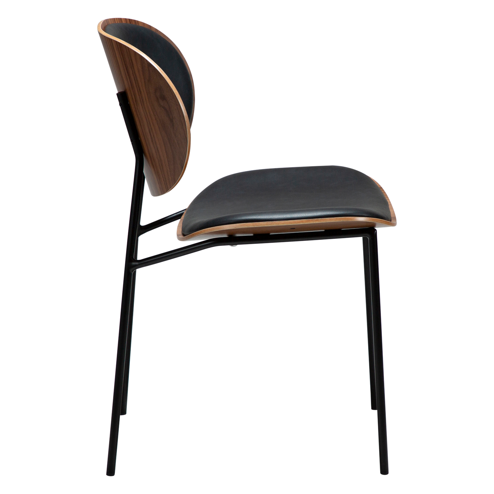 Raven black faux leather and walnut with black metal legs
