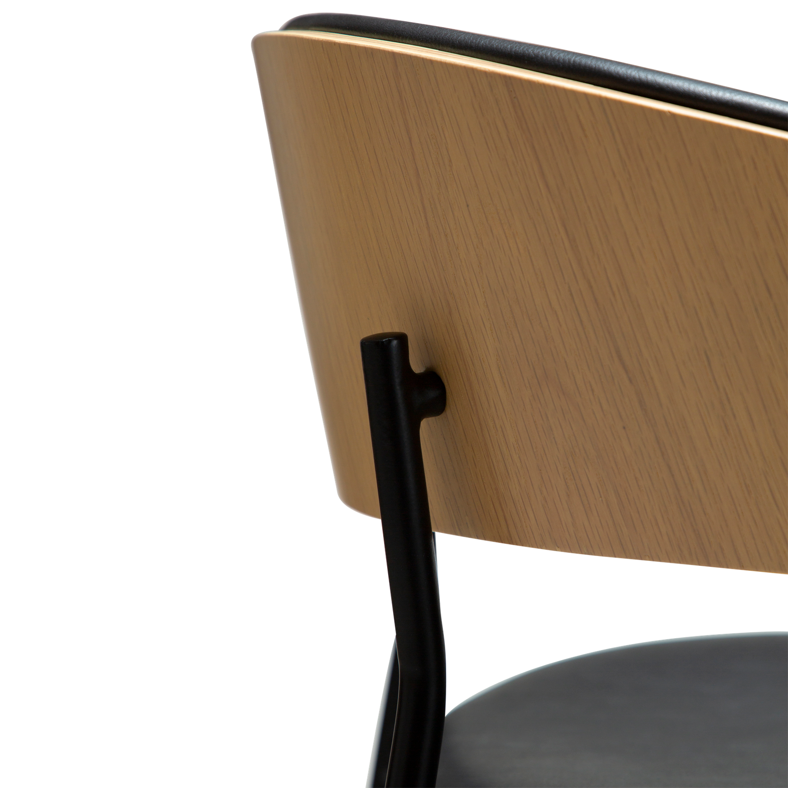 The CRIB counter stool combines midcentury classic with a modern feel. The beautiful design features include a veneer back upholstered on the inside, the back wrapping around and extending into armrests in a beautiful curve and slim, slightly conical legs for a light and elegant look. The CRIB COLLECTION consists of dining chairs, counter stools and lounge chairs.