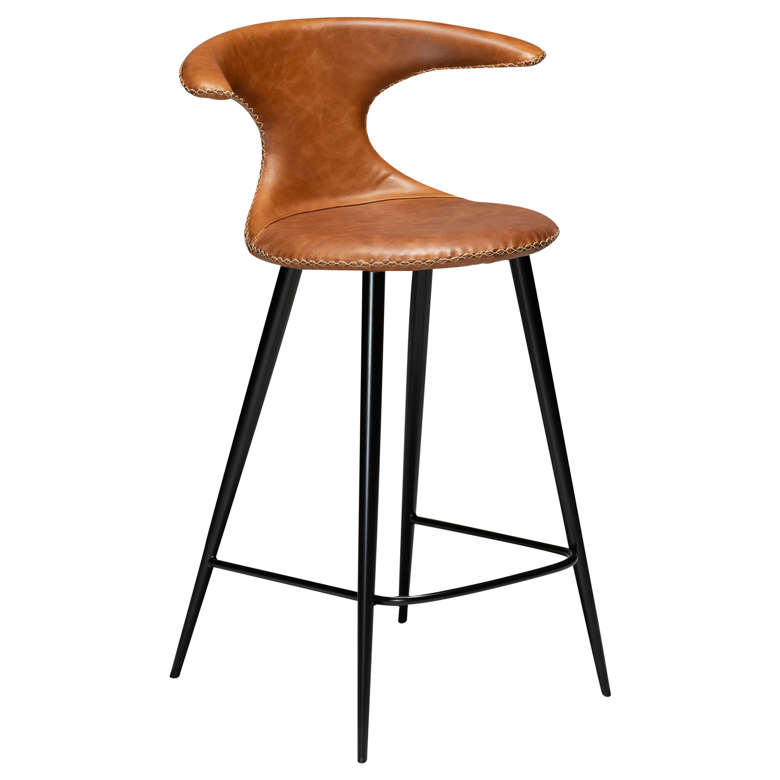 The HYPE counter stools feature an iconic scoop seat silhouette with baseball stitching. Black metal legs add to the modern look. The upholstered seat has great seating comfort and the chic design makes this bar stool a popular choice for both hospitality and home settings. The counter stool is a low bar stool that suits a counter top height.nTHE HYPE COLLECTION consists of chairs, armchairs, benches, bar stools, counter stools and office chairs.