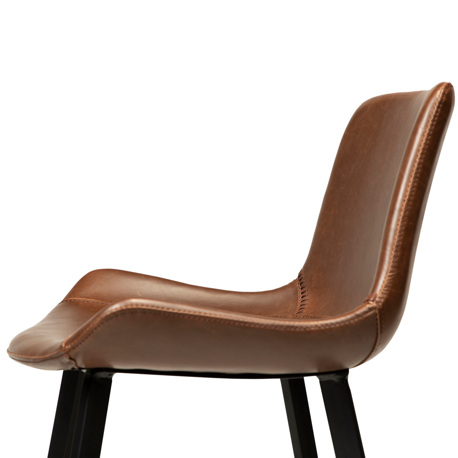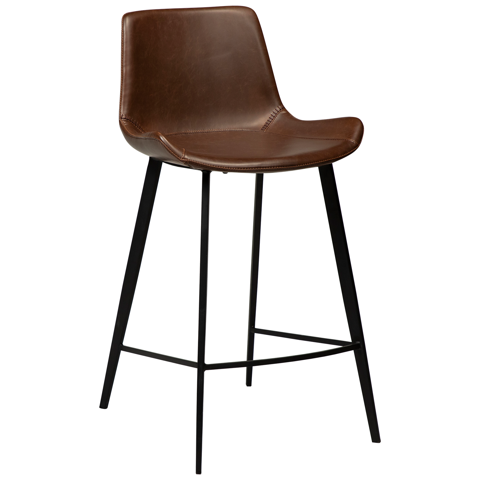 The HYPE counter stools feature an iconic scoop seat silhouette with baseball stitching. Black metal legs add to the modern look. The upholstered seat has great seating comfort and the chic design makes this bar stool a popular choice for both hospitality and home settings. The counter stool is a low bar stool that suits a counter top height.nTHE HYPE COLLECTION consists of chairs, armchairs, benches, bar stools, counter stools and office chairs.