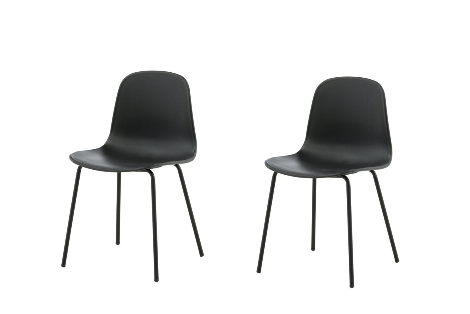 A pervasive black dining chair in the Arctic series is as practical and durable! With legs in black powder coated metal and a slightly rounded back and seat in black fully cast plastic, this dining chair is easy to keep clean and fresh. Supplement with a cozy dining table and enjoy pleasant meals! Lighter assembly is required.