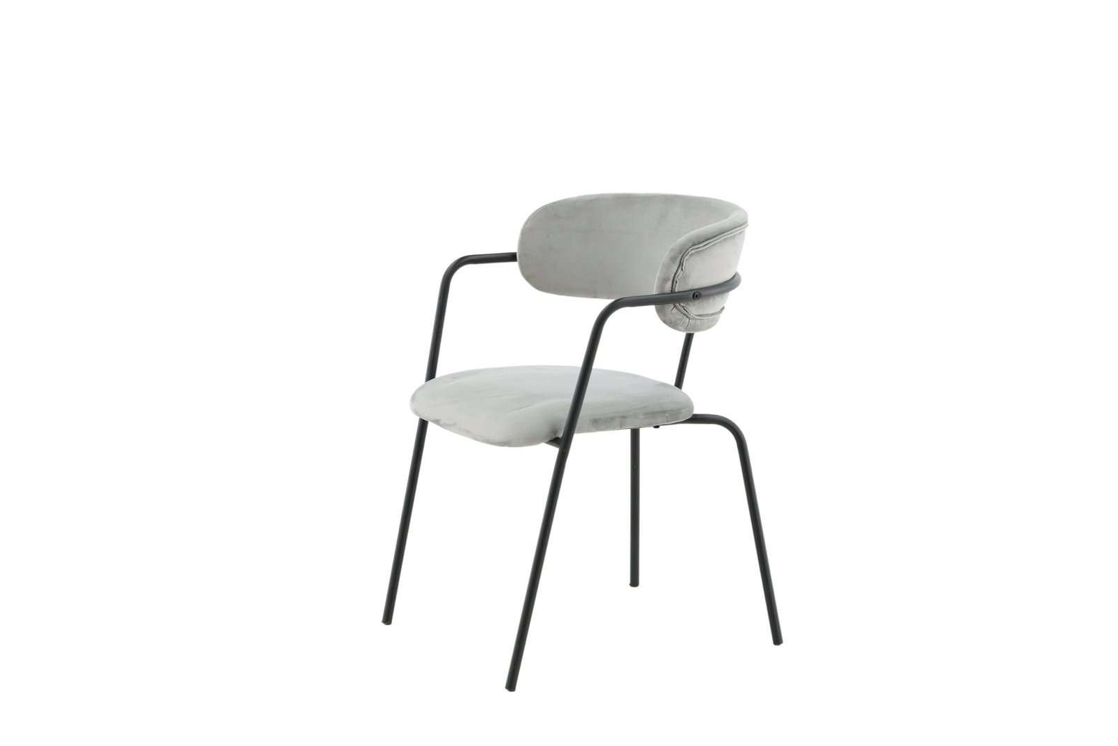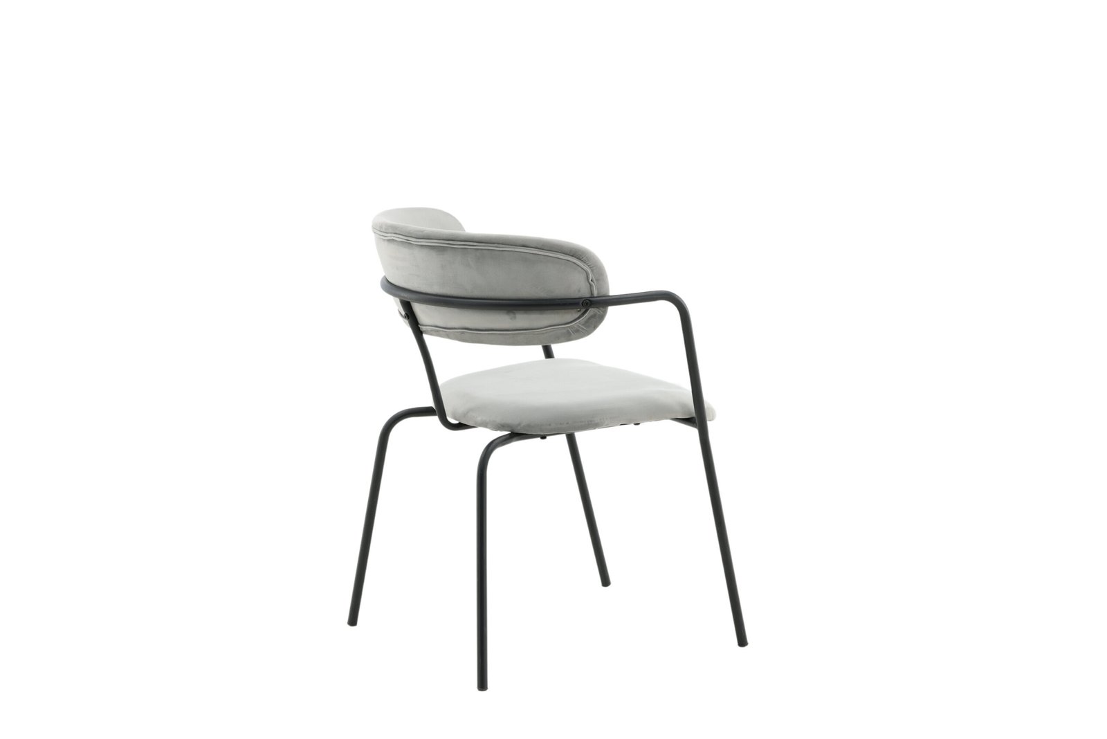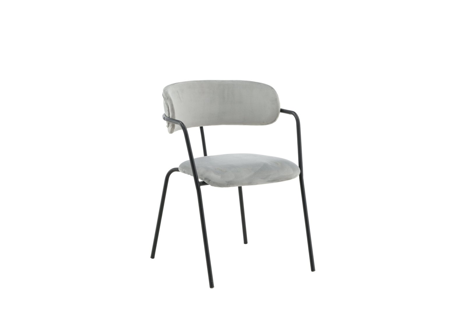 As comfortable as it is eye-catching! This stylish dining chair from the Arrow series features a modern frame with legs and integrated armrests in black powder-coated metal. The backrest is gently rounded in the same material as the seat, in padded gray velvet fabric. Create a pleasant focal point in the heart of your home! Some assembly required.