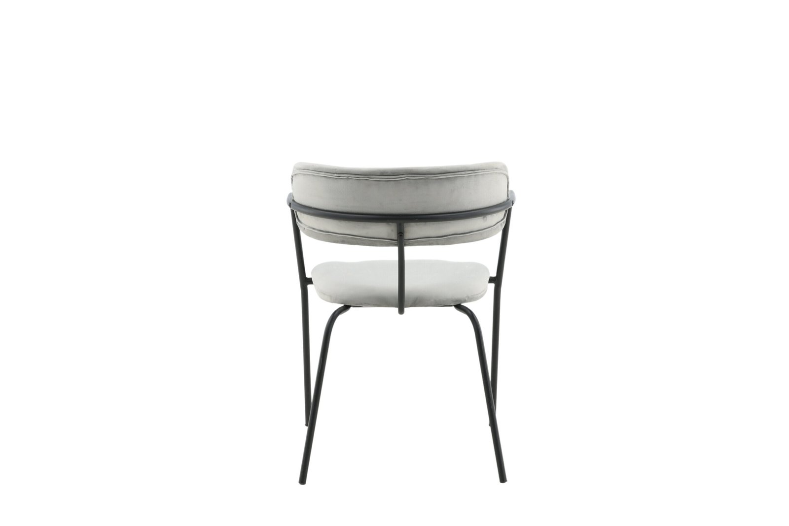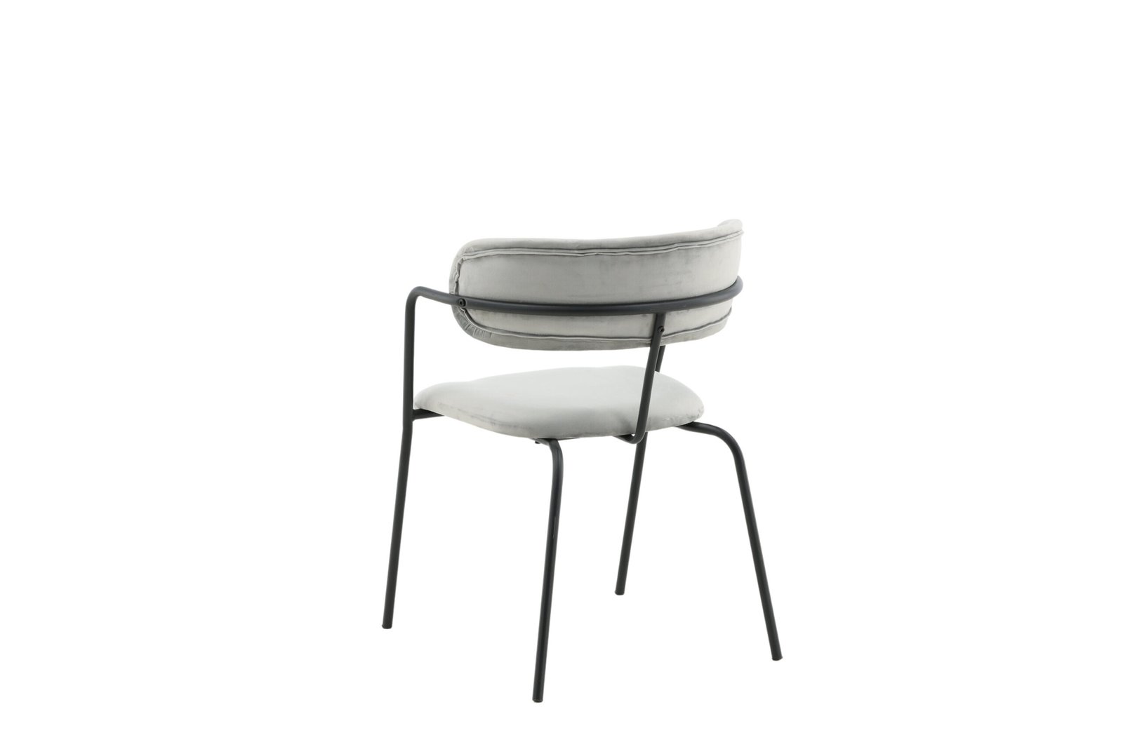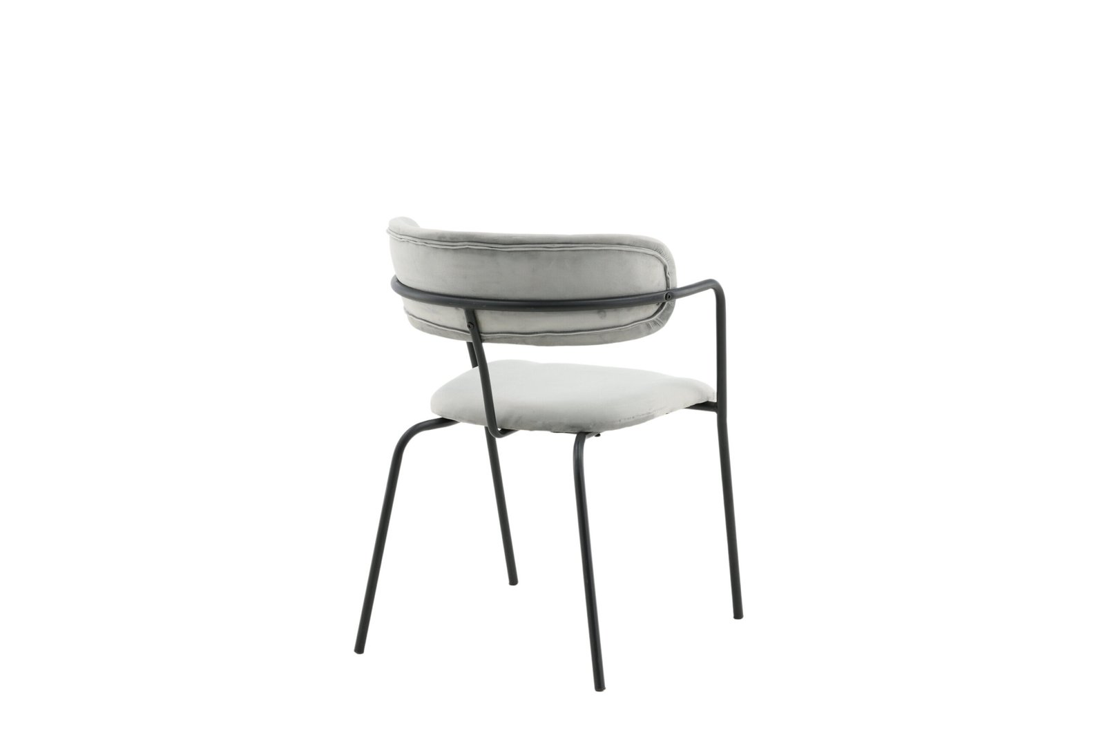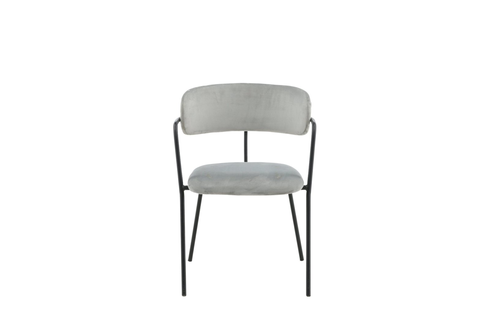 As comfortable as it is eye-catching! This stylish dining chair from the Arrow series features a modern frame with legs and integrated armrests in black powder-coated metal. The backrest is gently rounded in the same material as the seat, in padded gray velvet fabric. Create a pleasant focal point in the heart of your home! Some assembly required.