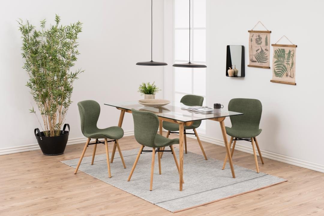 Batilda -A1 dining chair, Rio fabric green 140, base oiled oak, box 2 pcs