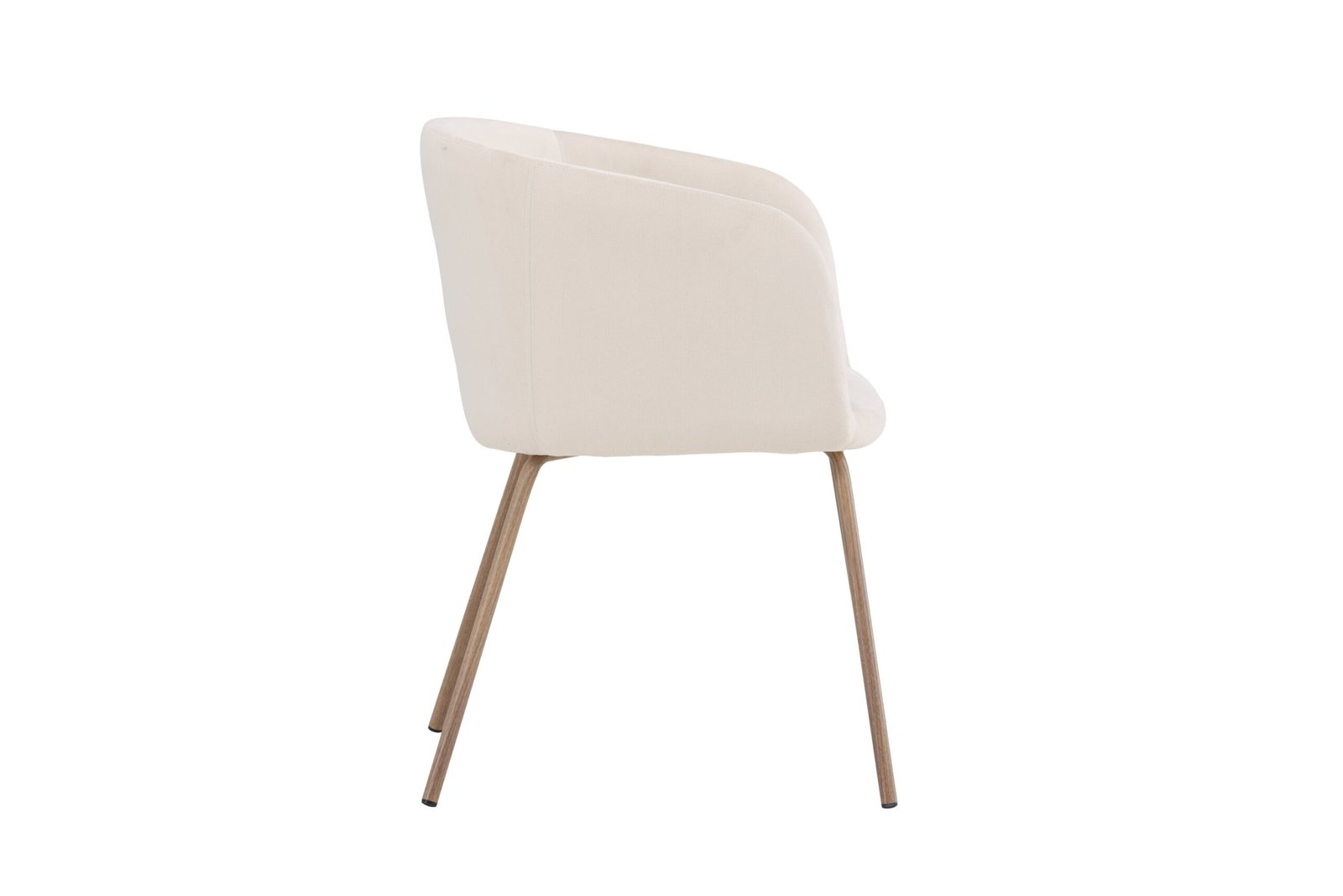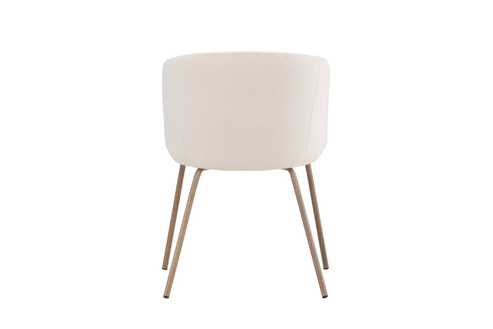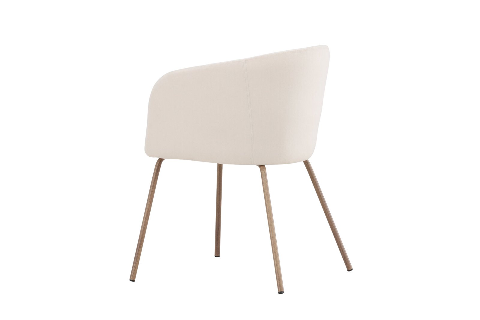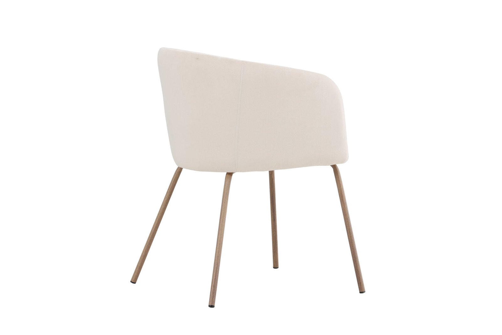 Berit is a sleek dining chair that combines comfort with modern aesthetics. The chair features wood-colored legs in durable steel, providing both stability and a warm, natural look. The seat is upholstered in a soft beige velvet fabric that offers an inviting feel and fits perfectly in most homes. With its generous seating comfort, Berit is a chair you'll want to linger in – whether for dinners, conversations, or long coffee breaks.