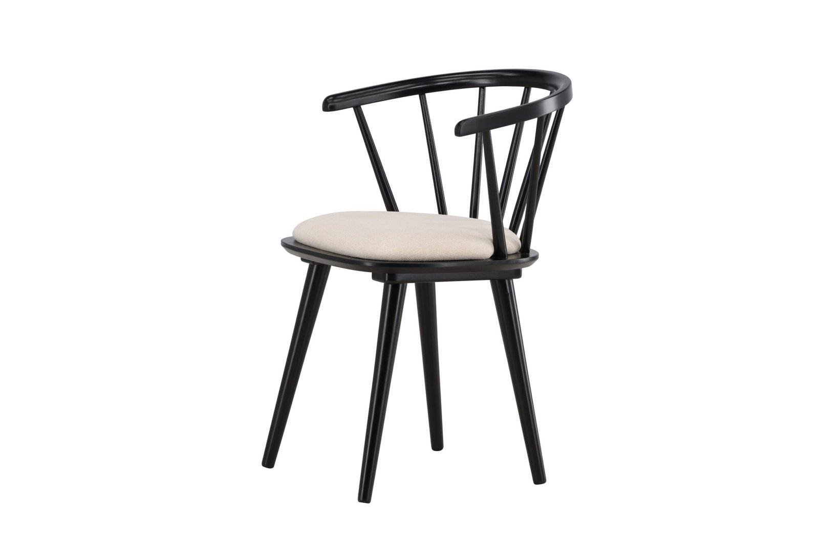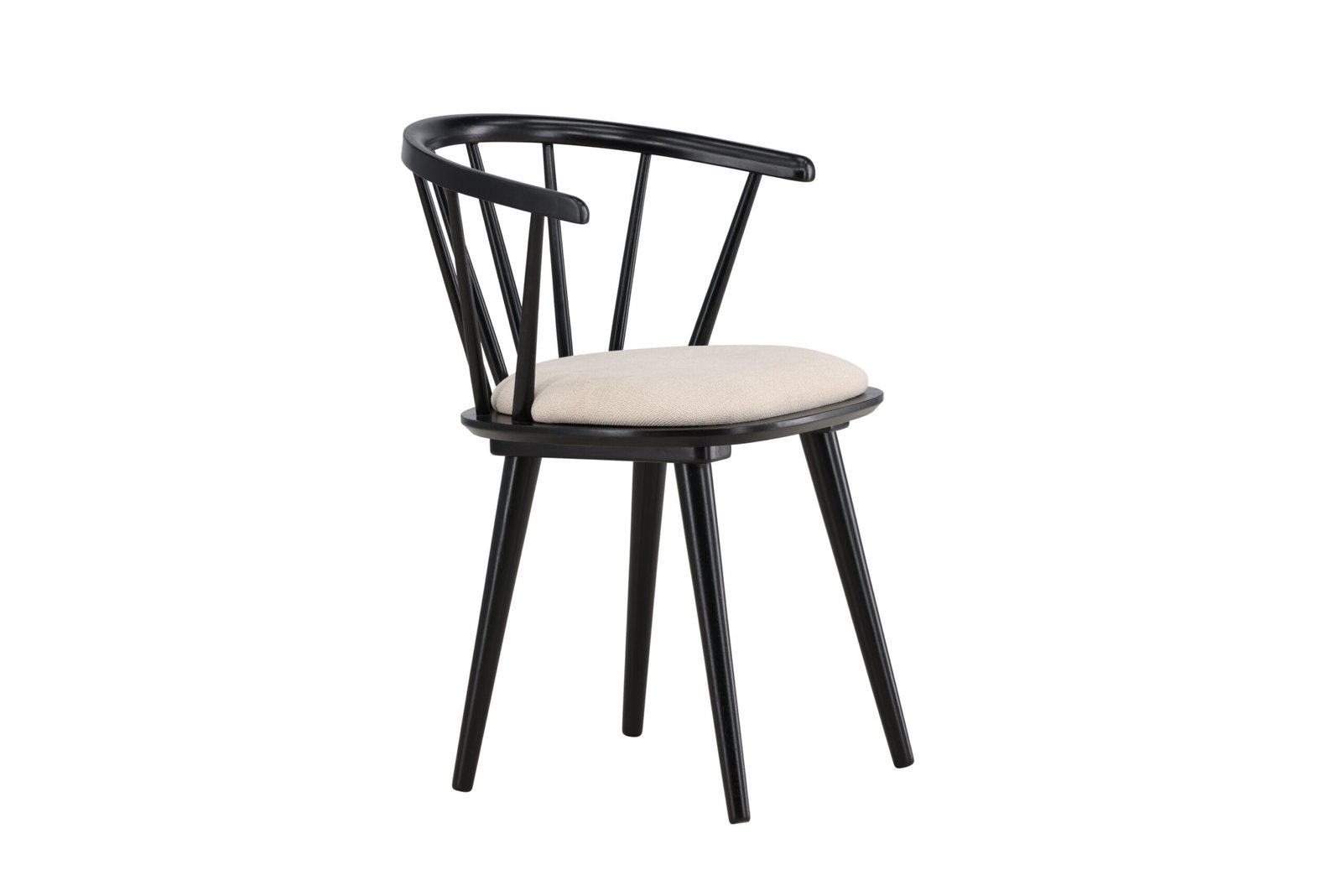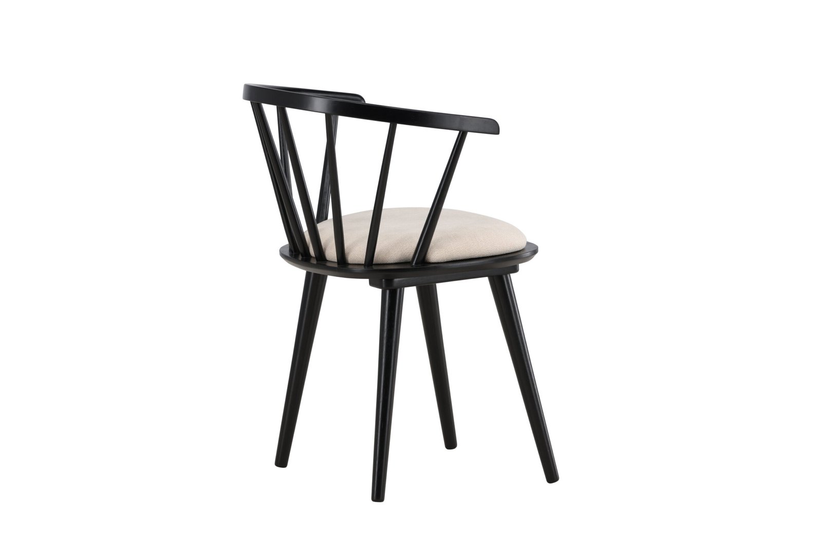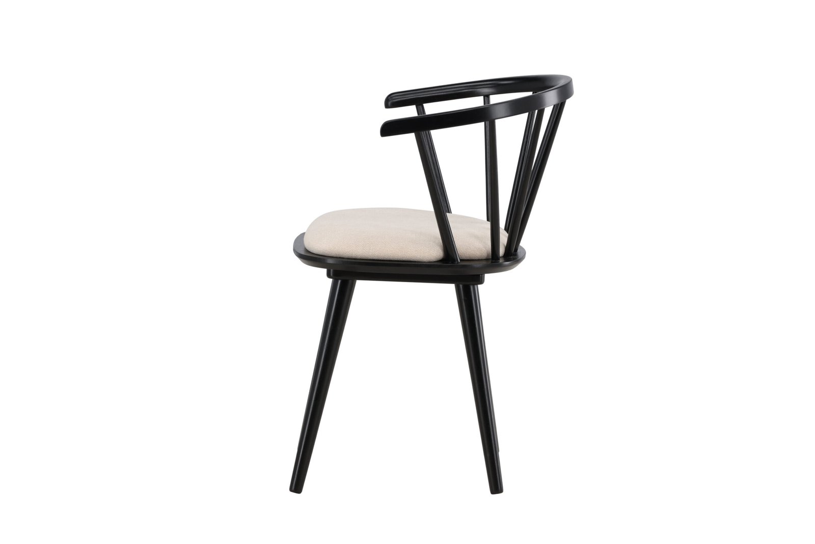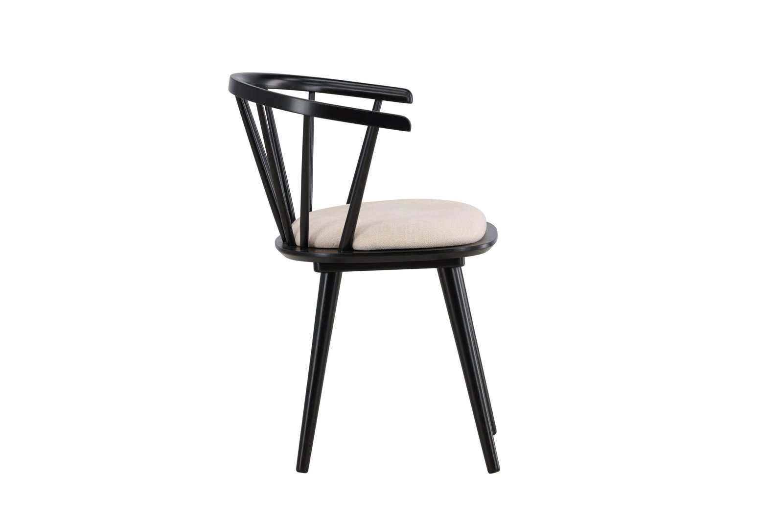 The beige seat cushion offers not only a soft and comfortable seating experience but also creates a beautiful contrast to the black wood. With its clean and stylish form, Bobby fits perfectly around the dining table or as a standalone chair in the hallway or home office.