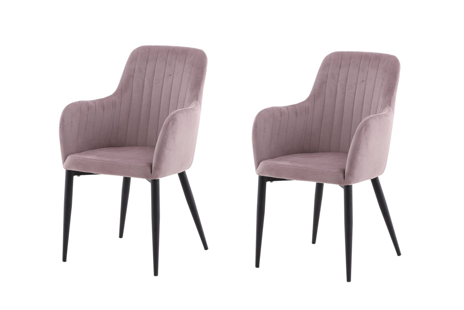 A nostalgic manchester trunk never goes out of time! This dining chair from the Comfort series is dressed in the light old pink velvet fabric that creates a modern look for the heart of the home. The legs are in black powder coated metal and the seat with integrated armrests in gray manchester fabric has a nice sitting comfort. Decorable stitches on the inside of the back and armrests become a nice detail. Lighter assembly is required.