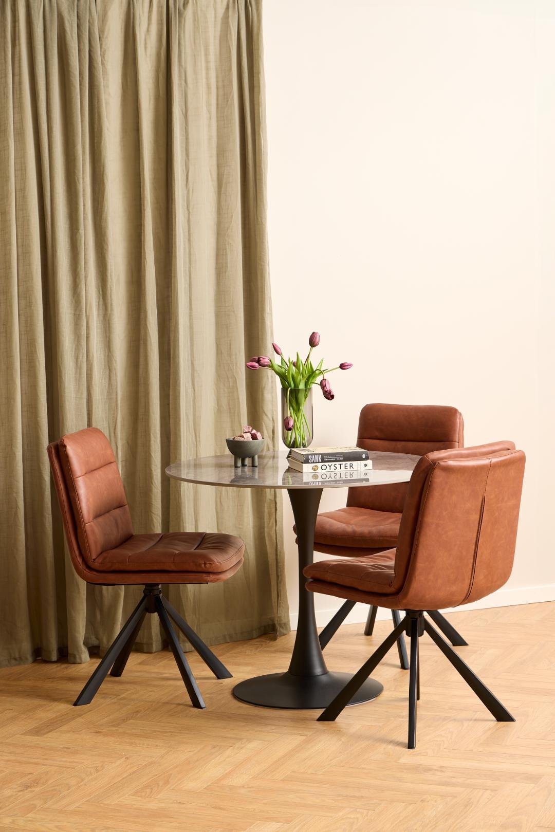 Dean dining chair, PU retro brandy 230920-1B FR, 4-star base matt black rough powder coated steel with horizontal stitchings, swivel and zip, box 2 pcs