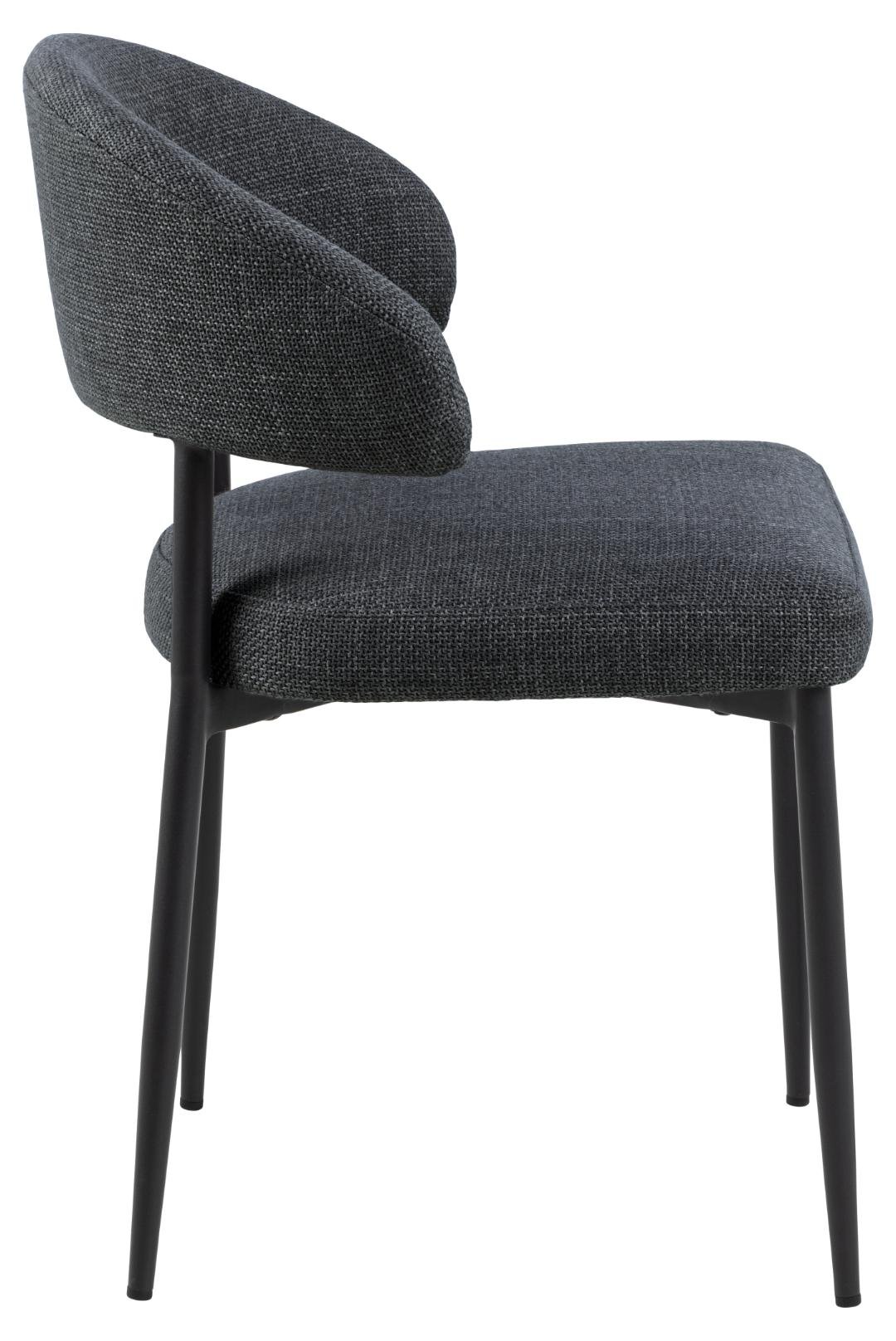 Edina dining chair, Basel fabric dark grey 19, base matt black rough powder coated steel, box 2 pcs