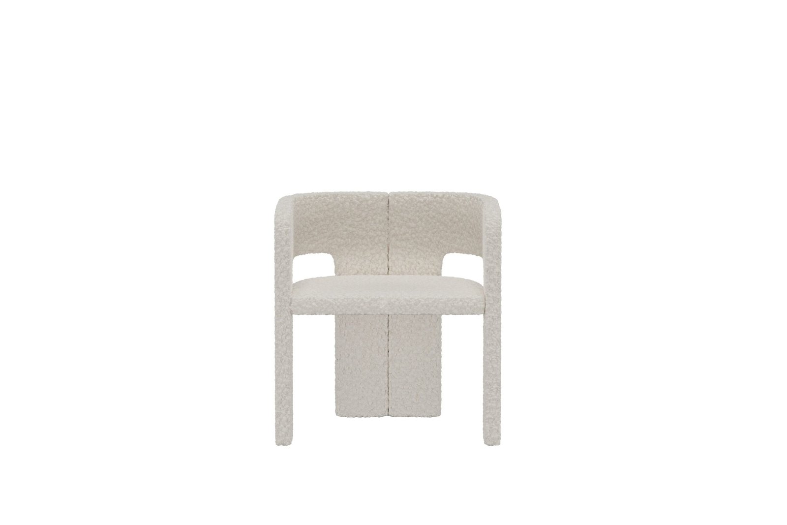 Kristin is an elegant dining chair with rounded shapes and a modern expression. The white bouclé fabric gives the chair a luxurious and inviting feel that makes every meal a little more special.