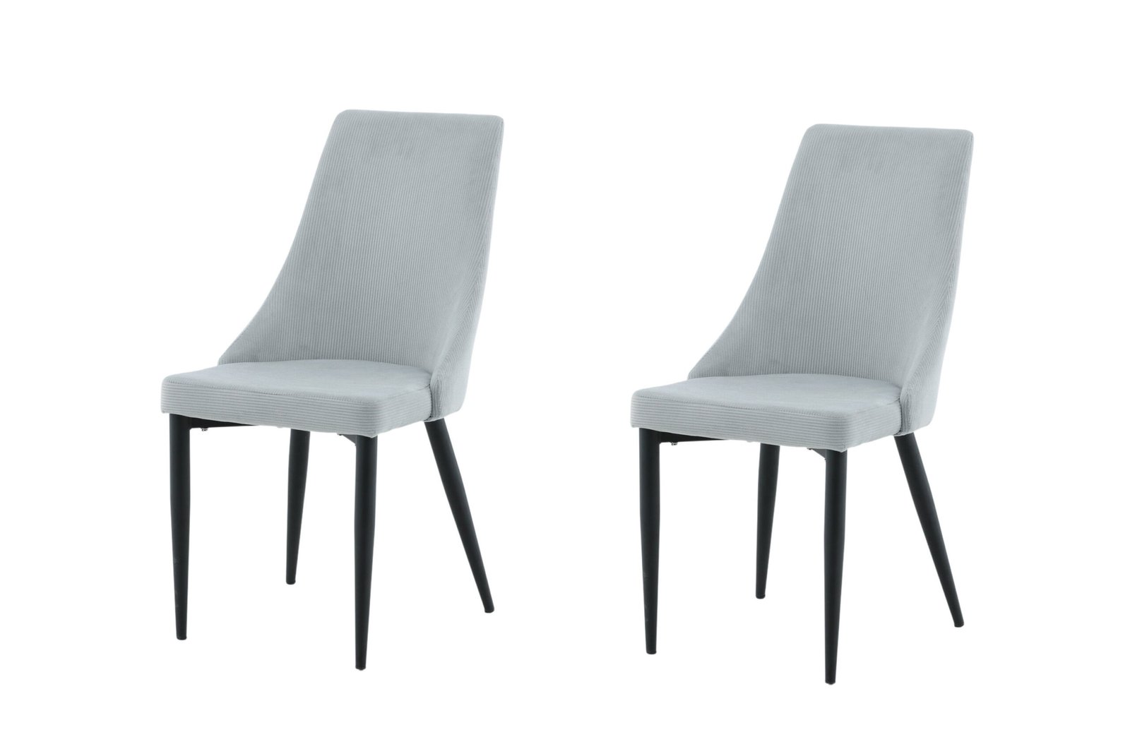 A sleek dining chair in a pleasant gray color that never goes out of style! The Leone dining chair features a fully upholstered classic design, legs in black powder-coated metal, and a high back and seat with soft padding in lovely light gray corduroy fabric. Some assembly required. Here, you and your guests sit comfortably for a long time and enjoy pleasant meals!