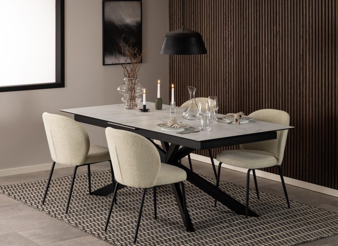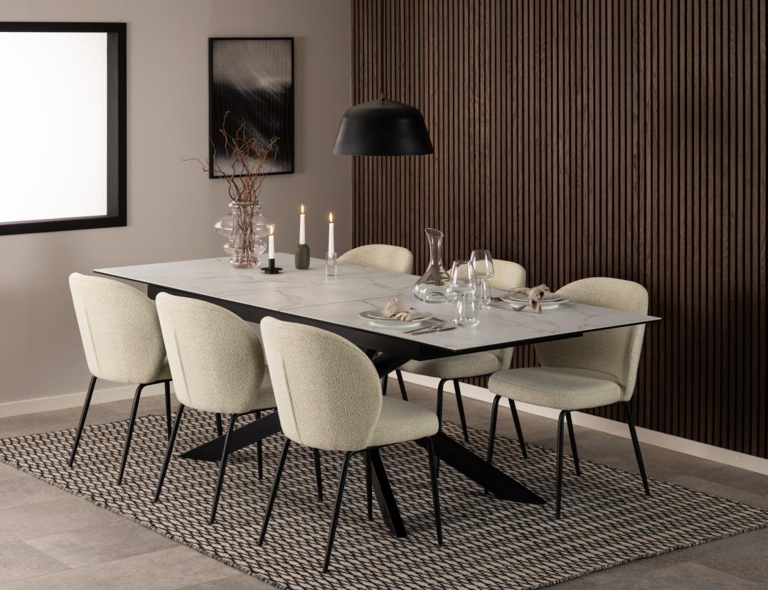 Patricia dining chair, Monza fabric cream 90, base matt black rough powder coated steel with zip, box 2 pcs