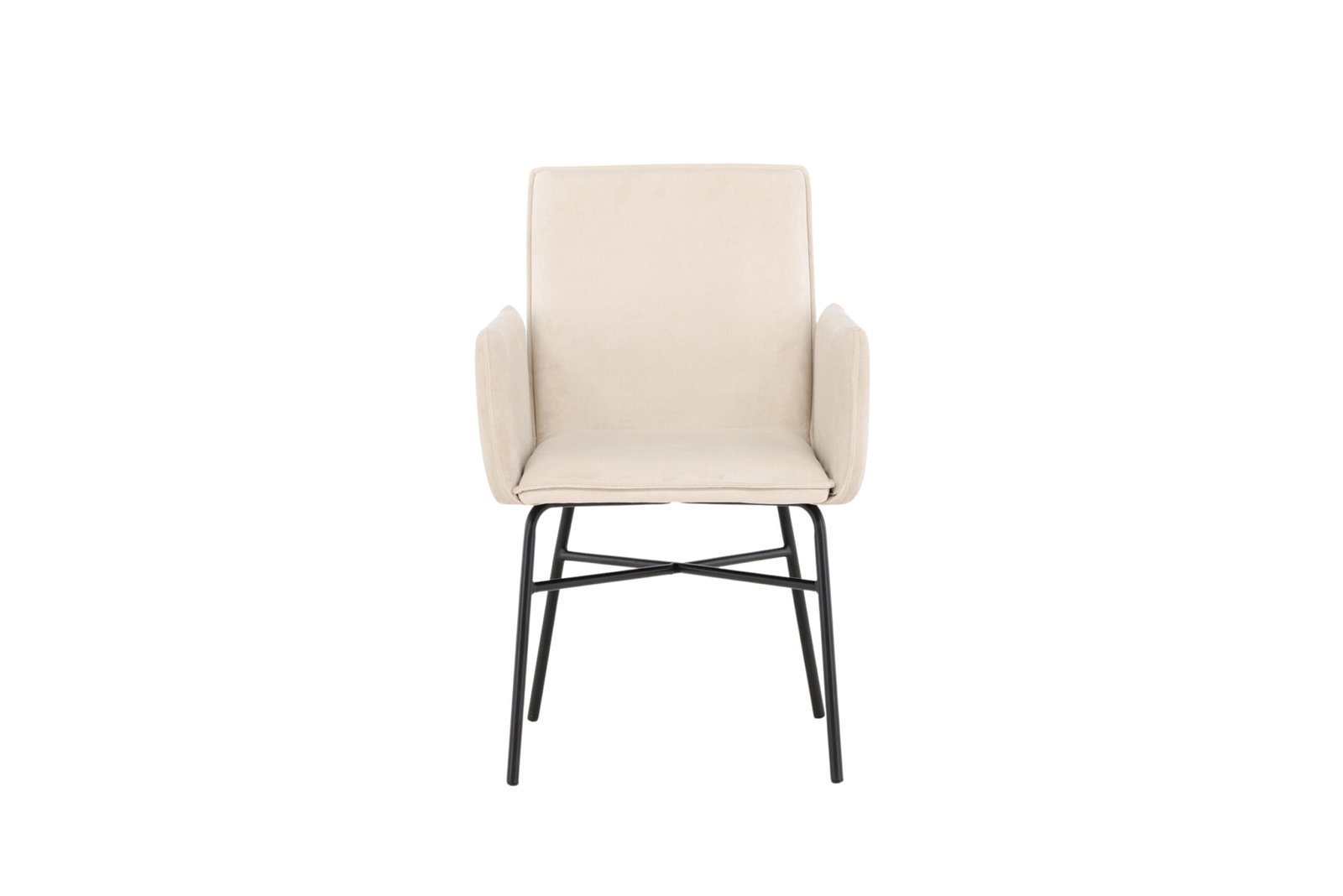 Explore the elegance and comfort of our dining chair Petra. With its beautiful beige color and black steel legs, this chair is both stylish and practical for your dining table.