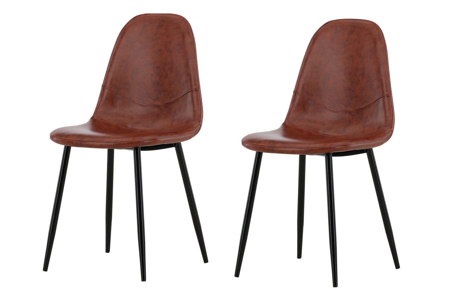 A modern chair dream from the Polar series in classic brown faux leather, with soft padding! This dining chair in a fully upholstered design with a gently rounded back and legs in black powder-coated metal is as comfortable as it is eye-catching. Furnish the heart of the home invitingly and enjoy delightful meals together! Some assembly required.