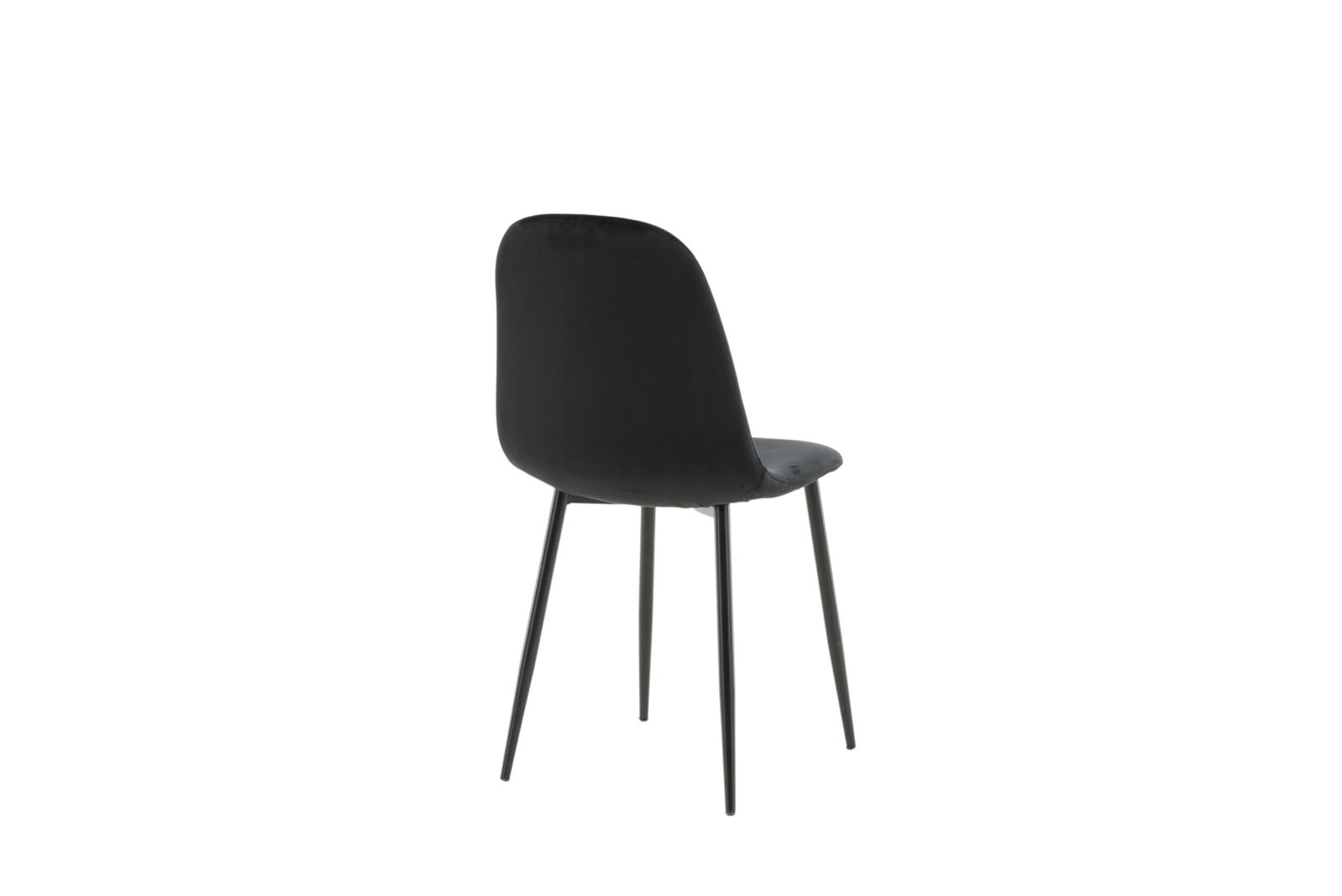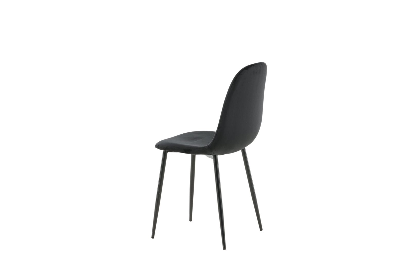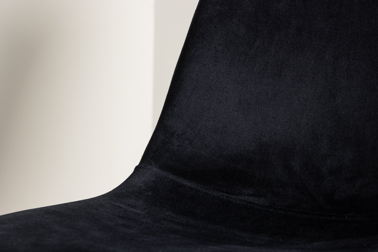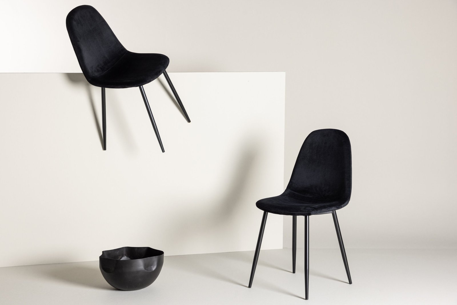 Sleek dining chair in consistent black color with modern design - what more could one wish for? Polar has a fully upholstered design, legs in black powder-coated metal, and a rounded back and seat in black velvet fabric with soft padding. Avoid compromising between comfort and design! Some assembly required.