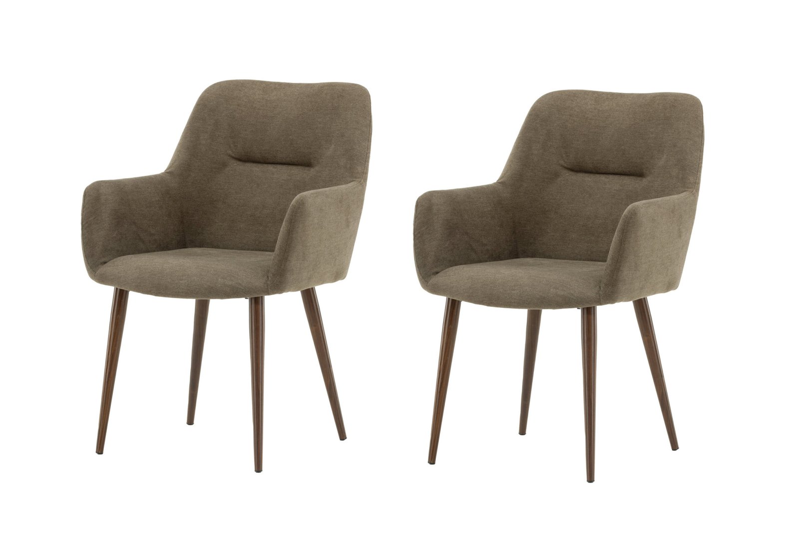 Don't have to compromise between style and comfort! With this comfortable dining chair from the Tomorrow series you sit for a long time and enjoy pleasant moments. The fully dressed seat with integrated armrests is in brown polyester fabric and the chair legs are easily flared in a modern walnut brown color. Create an inviting and charming atmosphere that feels homely and family!