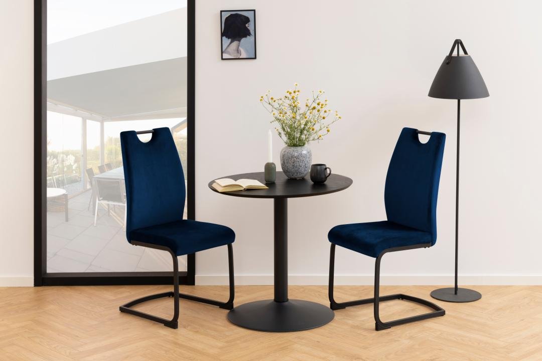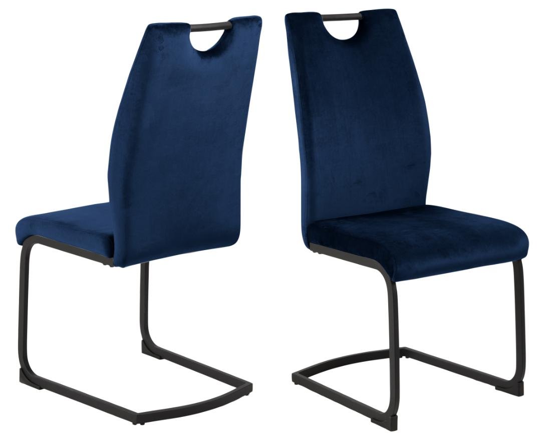Ulla dining chair, Dublin fabric dark blue 49, swing base matt black rough powder coated steel with handle, box 2 pcs