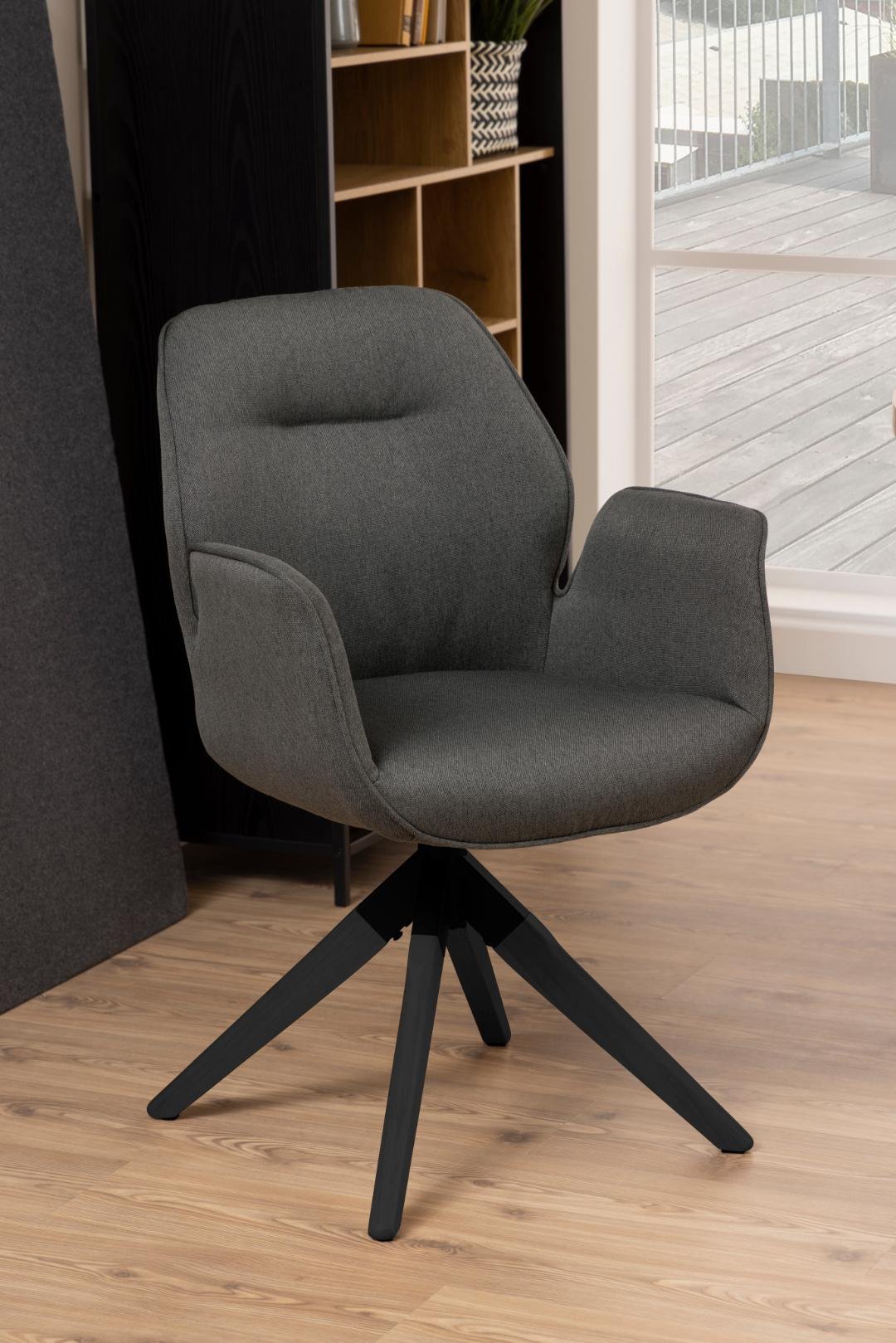 Aura dining chair with armrest, Town fabric dark grey 33, 4-star base matt black NC lacquered rubberwood with auto-return