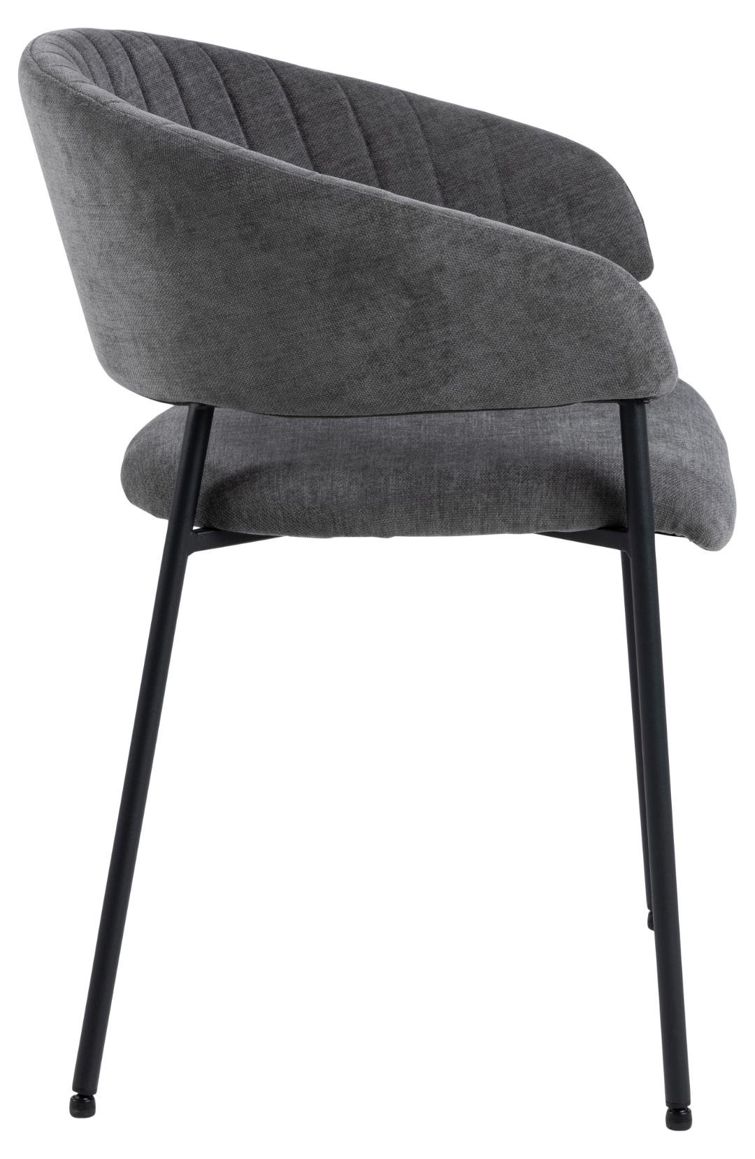 Ann dining chair with armrest, Danny fabric dark grey 18, base matt black rough powder coated steel with vertical stitchings, box 2 pcs