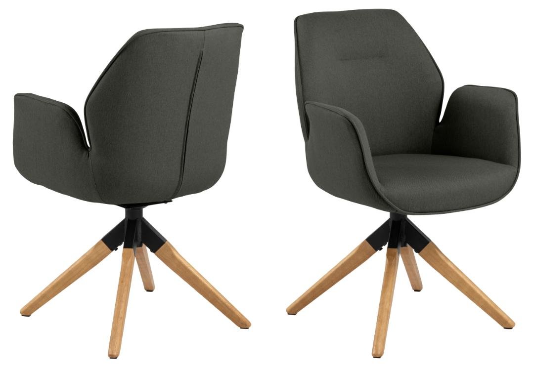Aura dining chair with armrest, Town fabric dark grey 33, 4-star base oak stained oiled rubberwood with auto-return