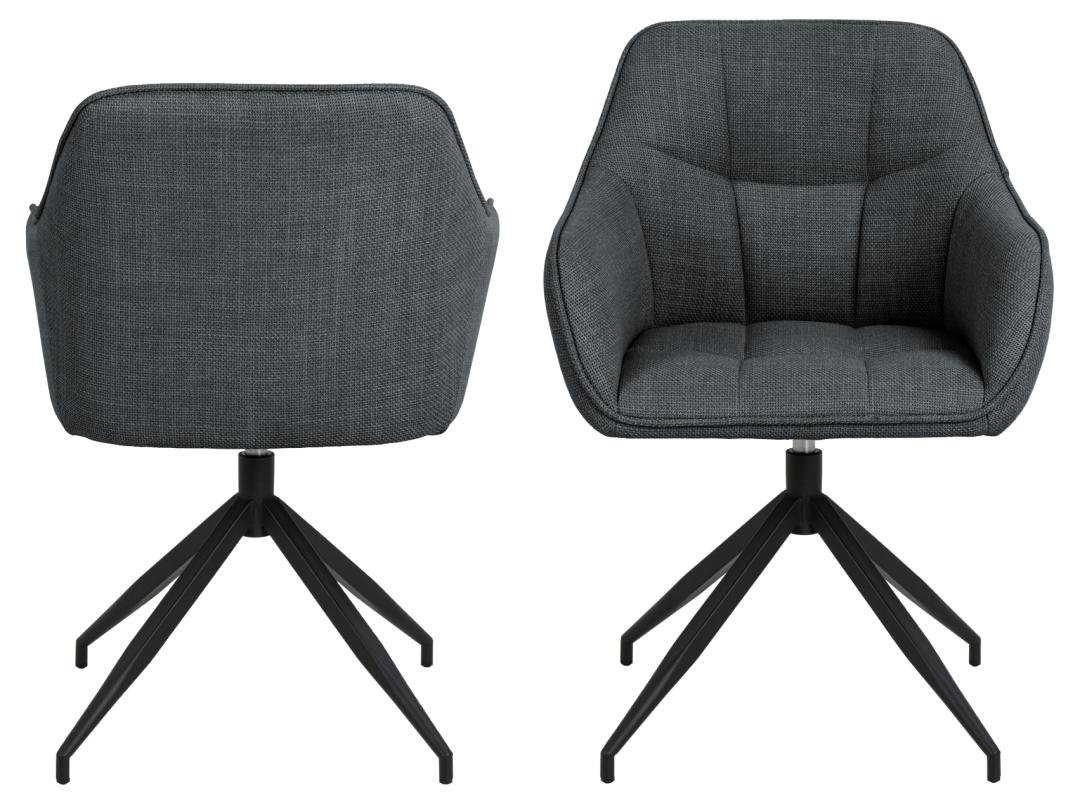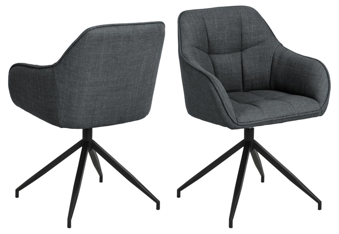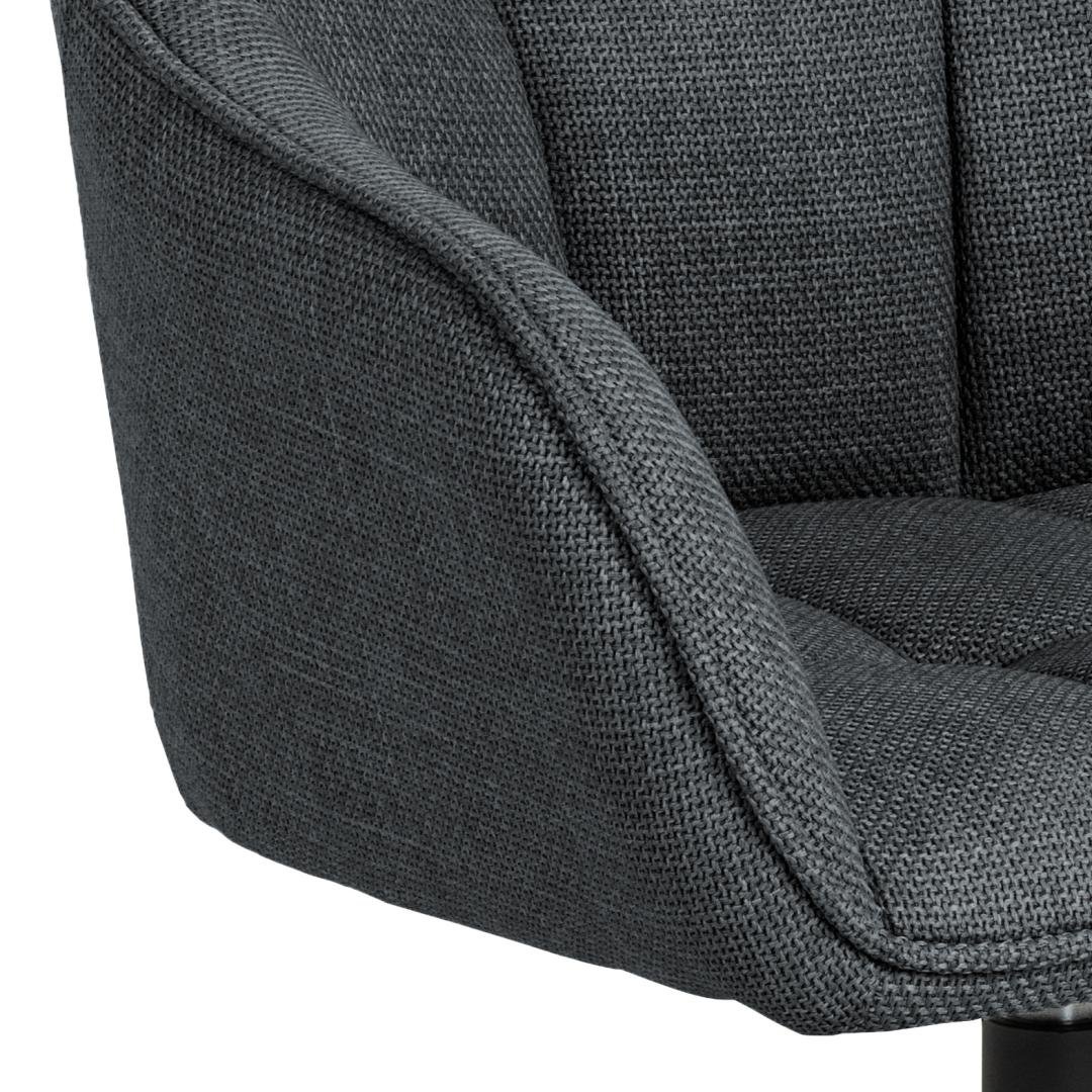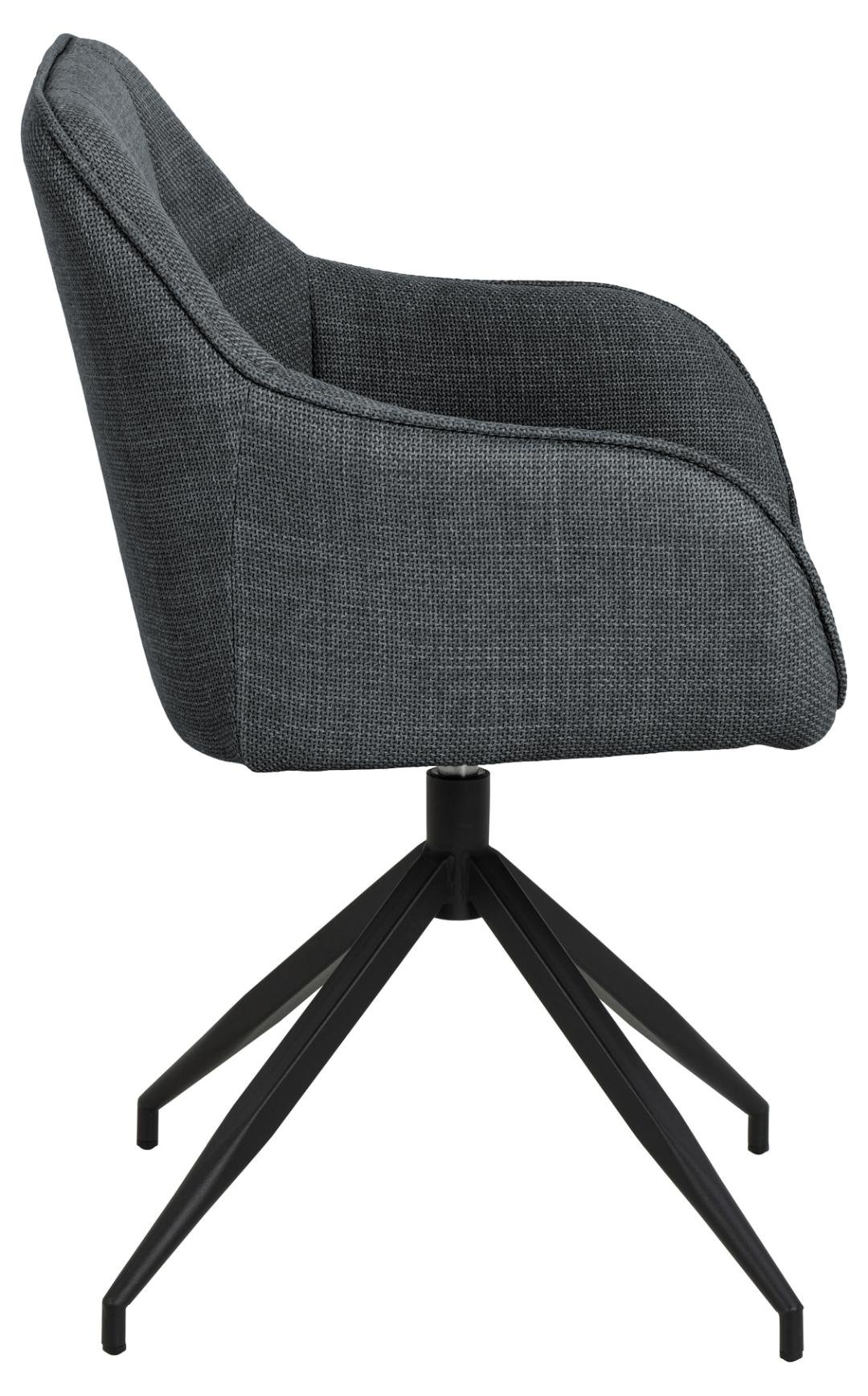 Brenda dining chair with armrest, Basel fabric dark grey 19, 4-star base matt black rough powder coated steel with square stitchings and swivel