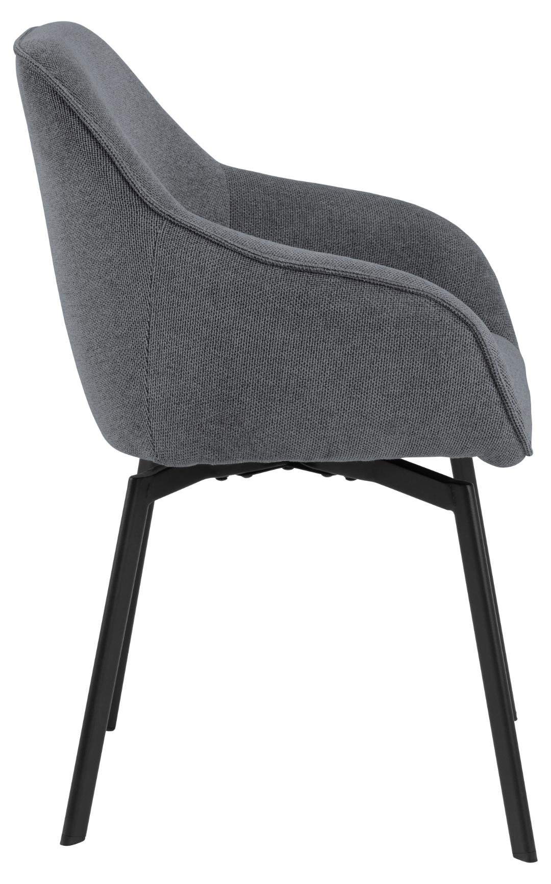 Clara dining chair with armrest, Caso fabric anthracite 17, base matt black rough powder coated steel with auto-return, box 2 pcs