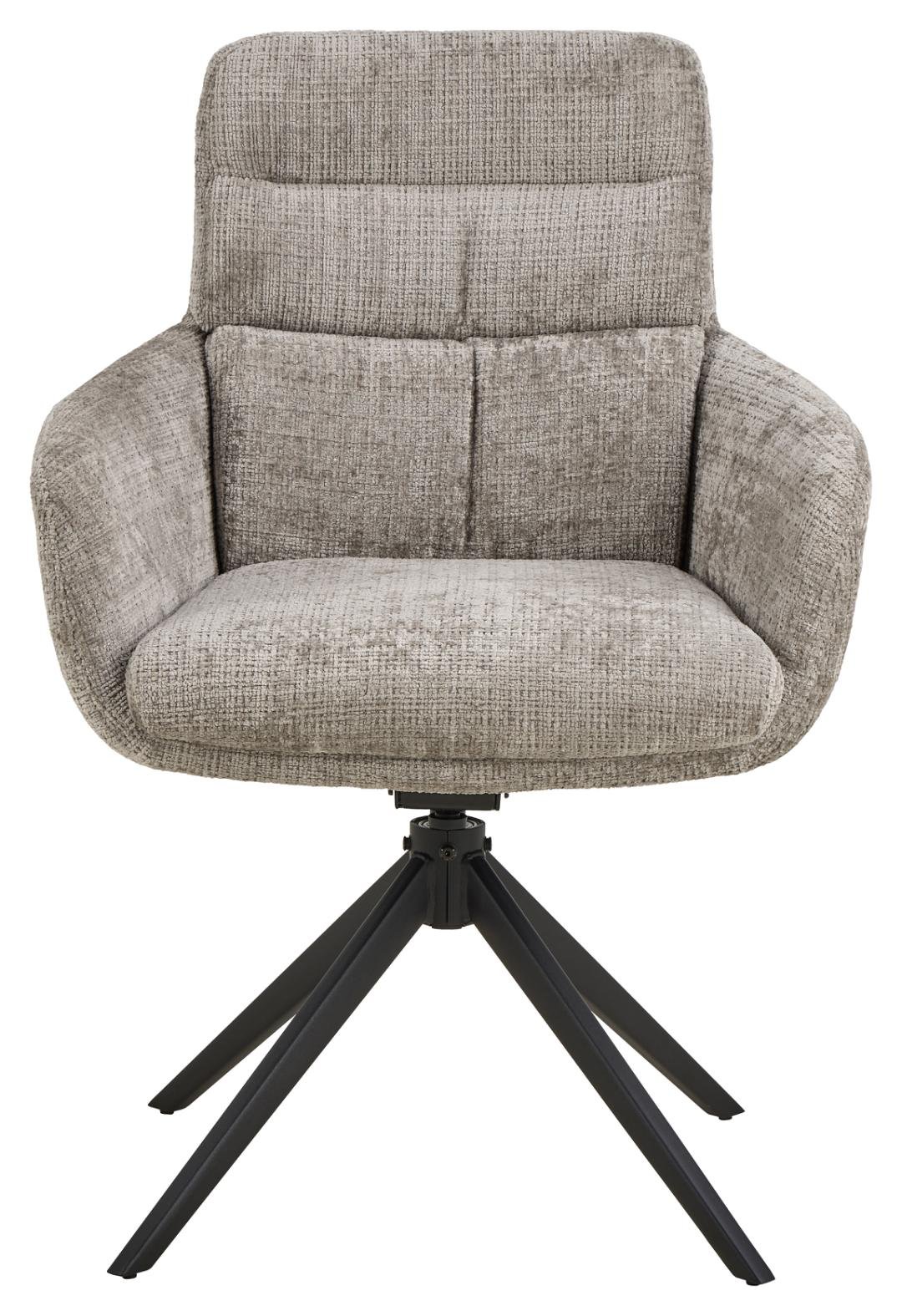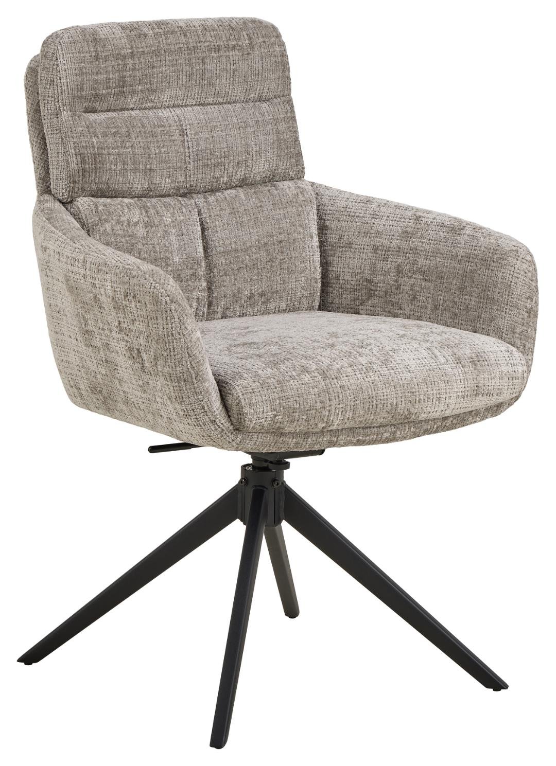 Roger dining chair with armrest, Juto fabric grey 85, 4-star base matt black rough powder coated steel with auto-return, horizontal stitchings, swivel and tilt, box 2 pcs