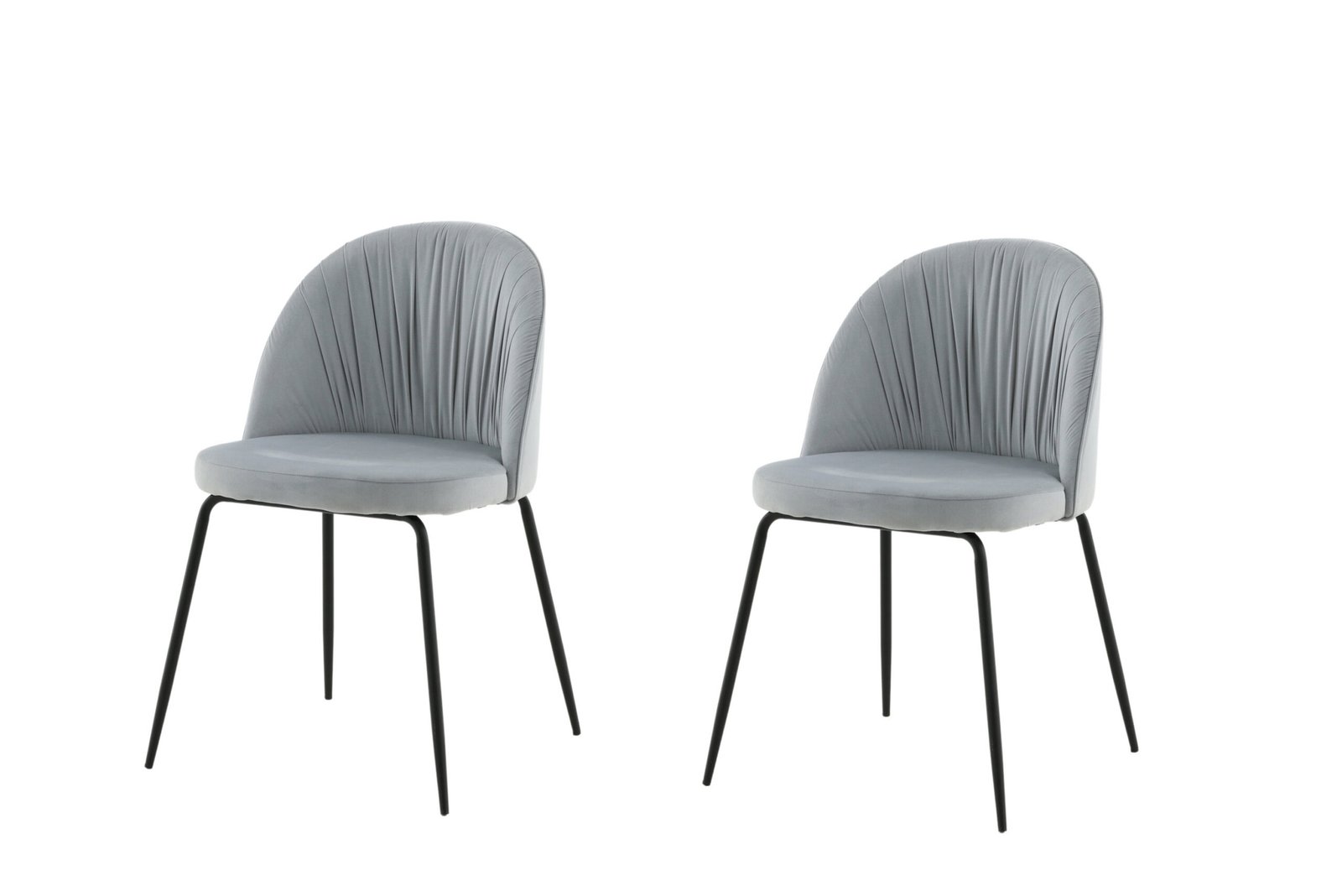 A modern chair with everyone right - comfortable, stylish and modern! Dining chair Wrinkles has an exclusive fully -clad design with legs in black powder coated metal. Rounded back and seat with soft padding, dressed in wrinkled gray velvet fabric that creates a stylish and inviting whole. Lighter assembly is required.