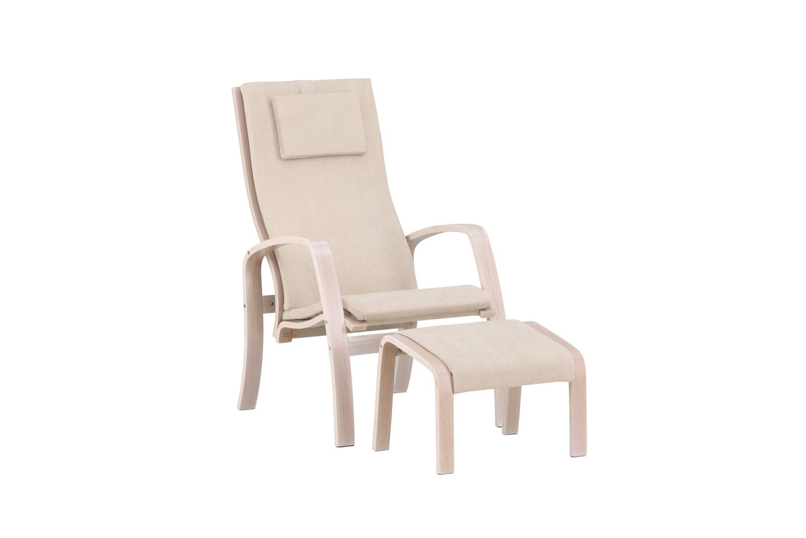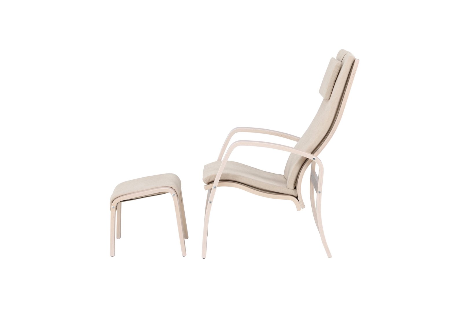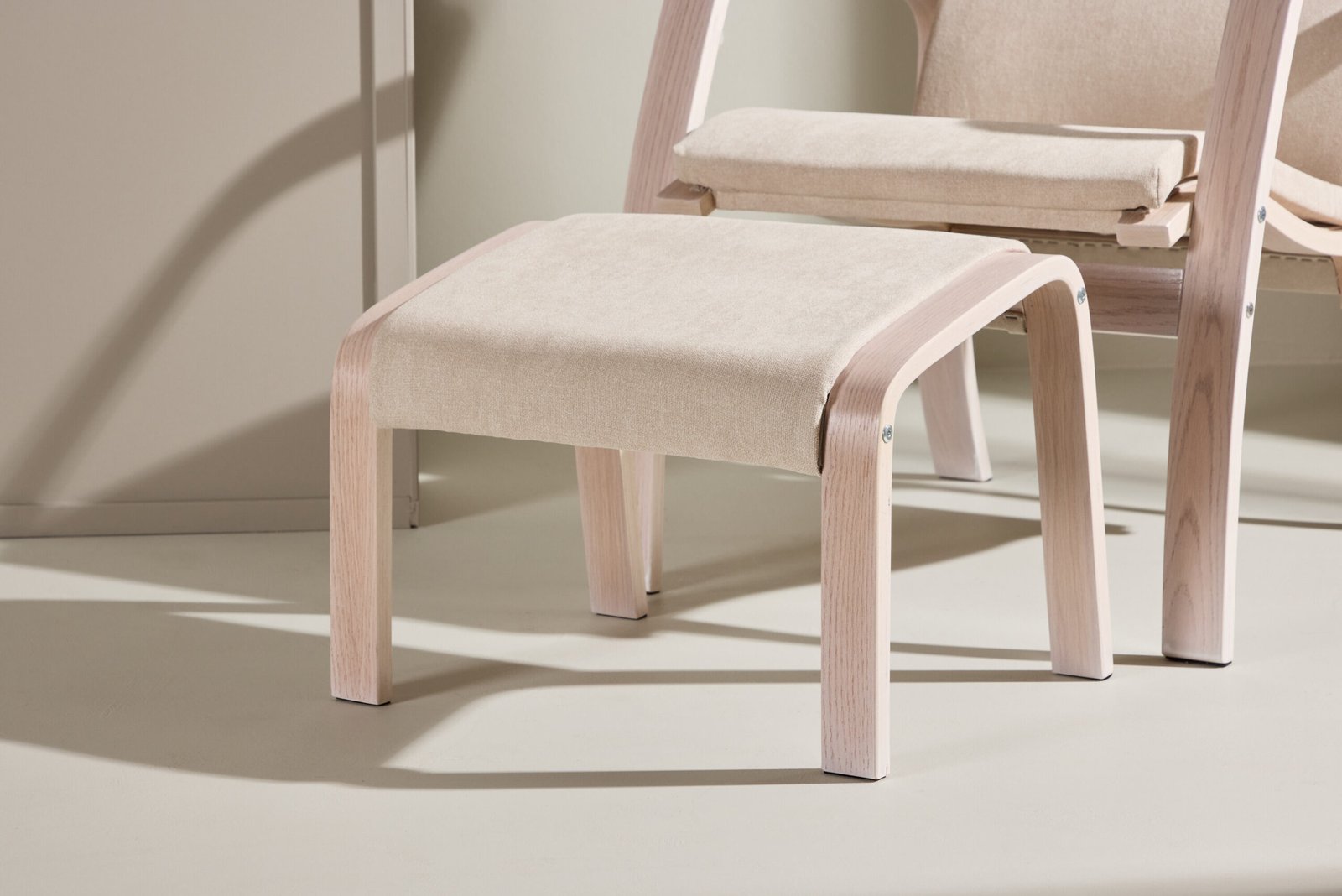 Sit back and relax after a long day in the Grötö armchair with its matching ottoman! Its plywood frame in whitewash, combined with the light grey polyester upholstery, creates an elegant and natural ambiance that seamlessly blends into any room. With its curved shapes and meticulously crafted details, the Grötö is both functional and stylish. The clean lines of the cushions contribute to a modern feel, complementing the armchair's graceful design. Experience the harmonious blend of materials, colors, and forms, and create an inviting oasis in your home with the Grötö armchair and ottoman.