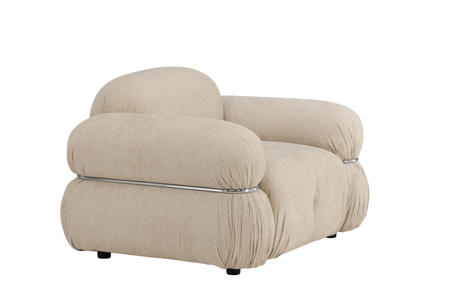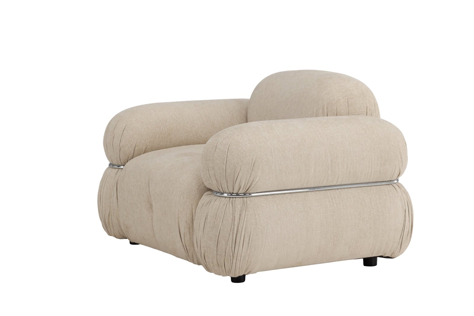 The soft beige upholstery offers a warm and timeless look, while the silvery details add a modern twist. Mika isn’t just comfortable to sit in – it elevates the entire room with its confident presence.