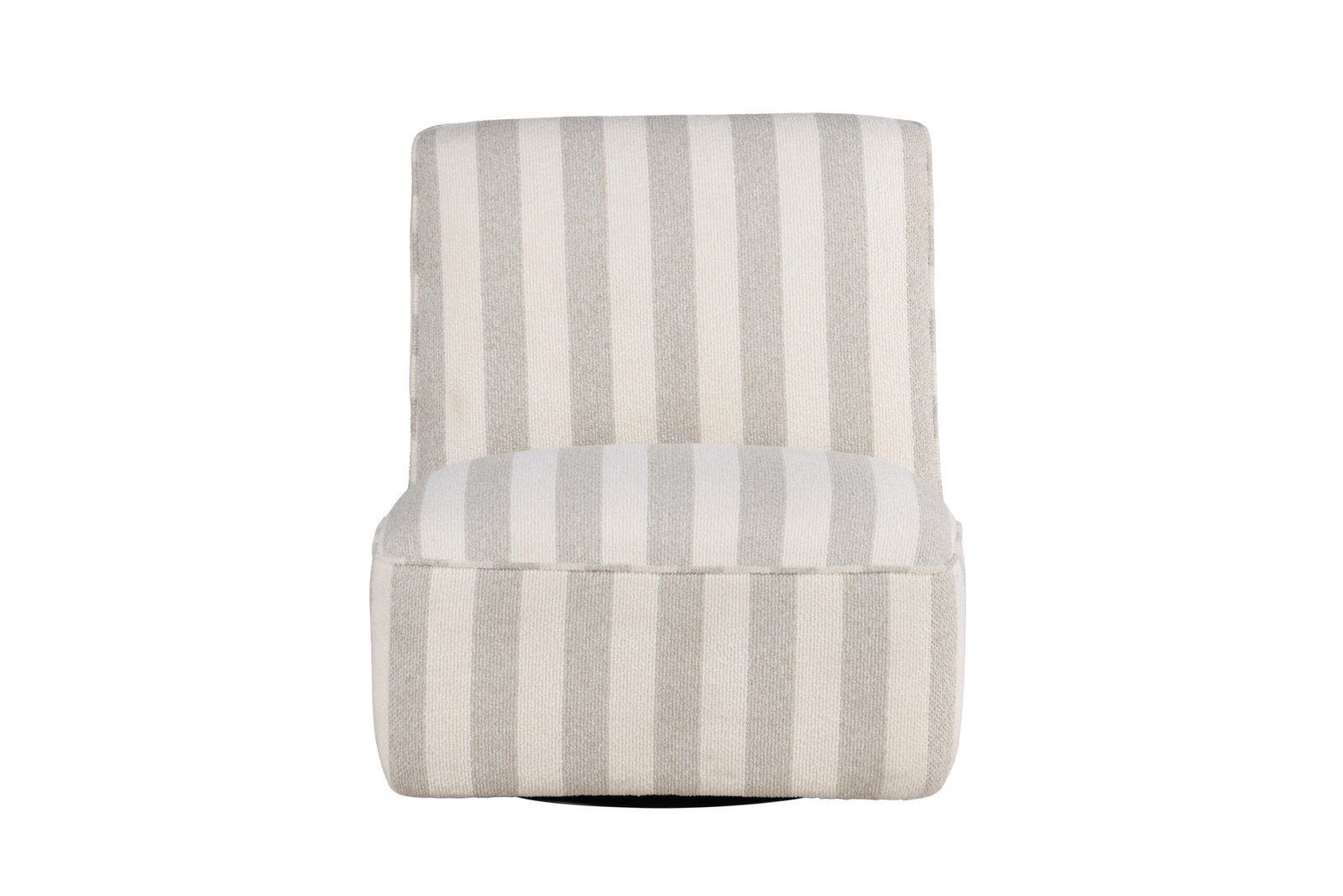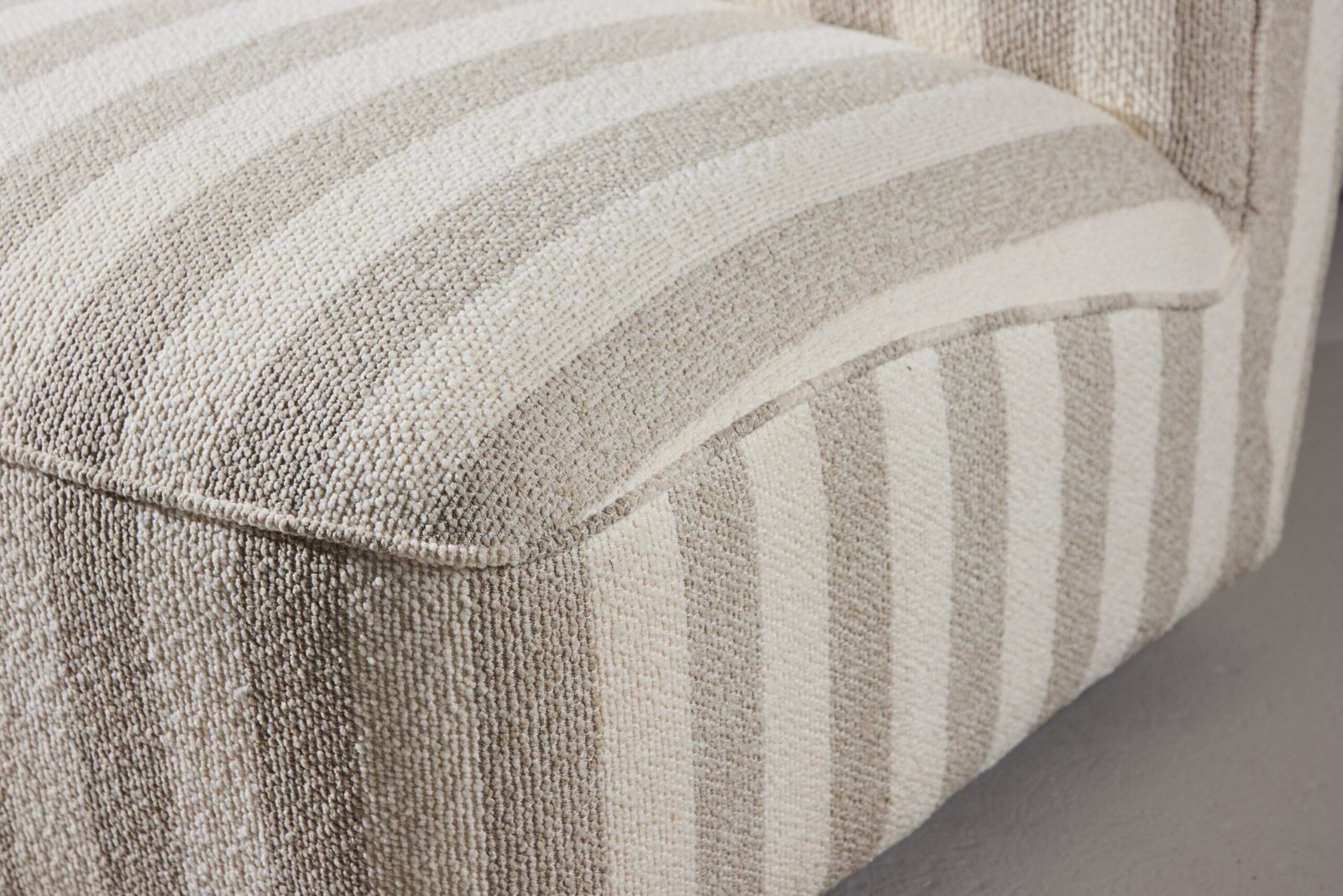 The chair stands out with its fabric upholstery featuring wide white and beige stripes, giving it a playful yet elegant expression. Thanks to its minimalist form, My fits just as well in the living room as in the bedroom or hallway – a flexible and stylish armchair for the modern home.