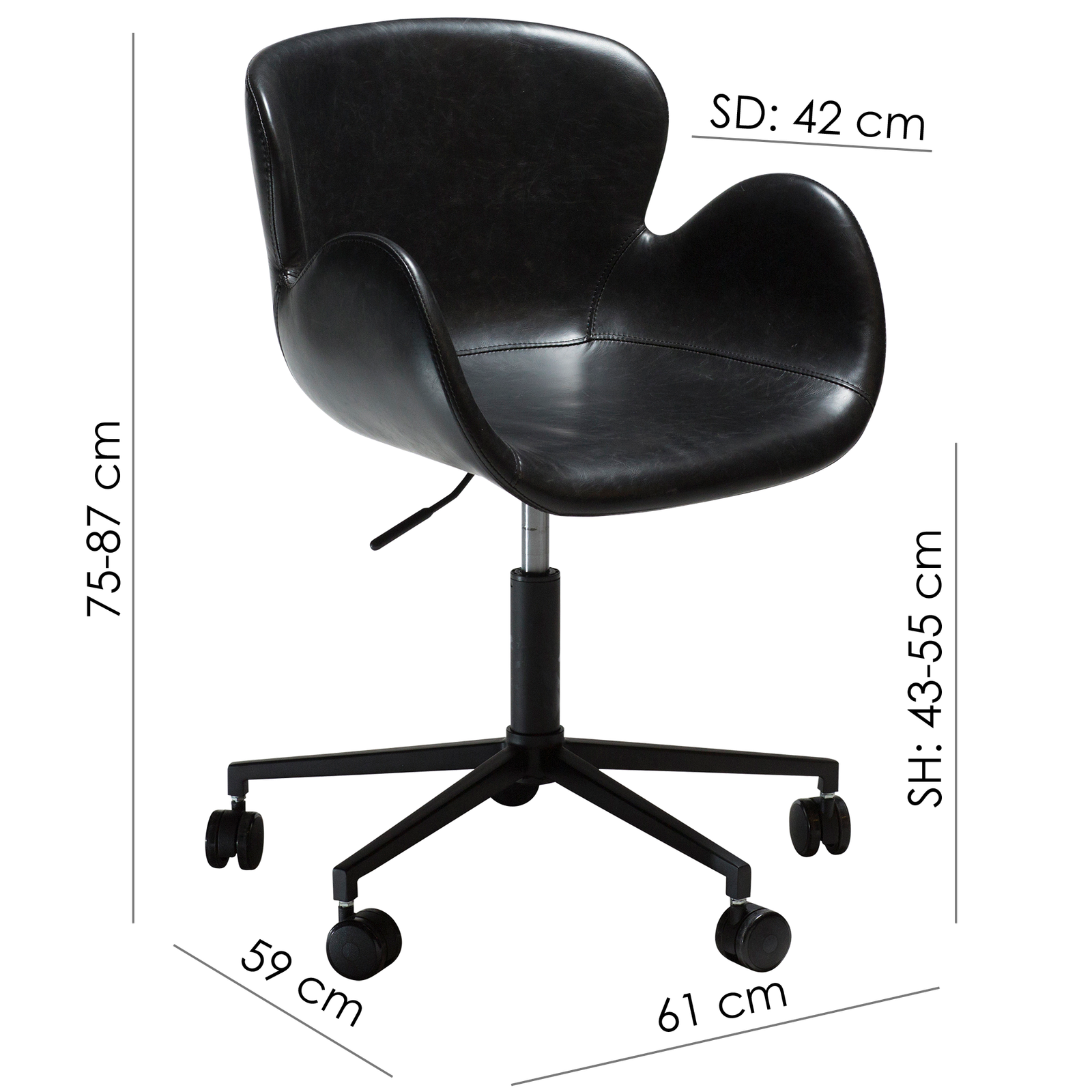 Curvy and with a dramatic silhouette, the GAIA office chair will make a statement in any office space. The GAIA office chair has a comfortable, embracing seat and armrests, and a black base with 5 wheels.nTHE GAIA COLLECTION consists of dining chairs, lounge chairs, bar stools, counter stools and office chairs.