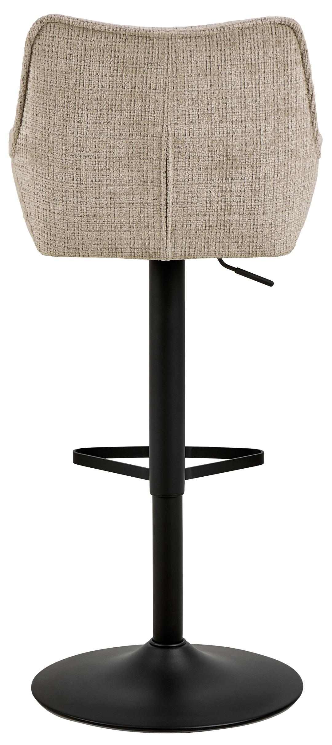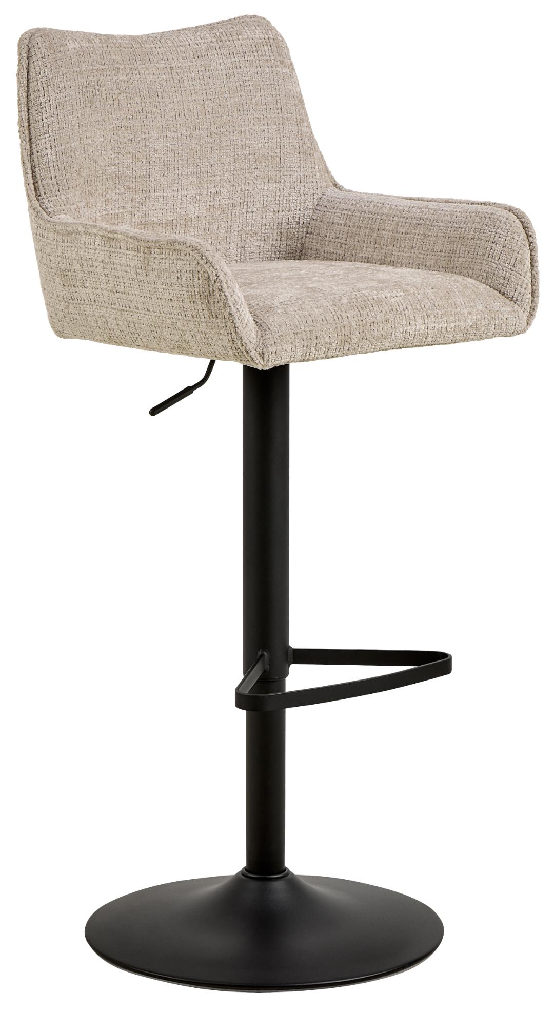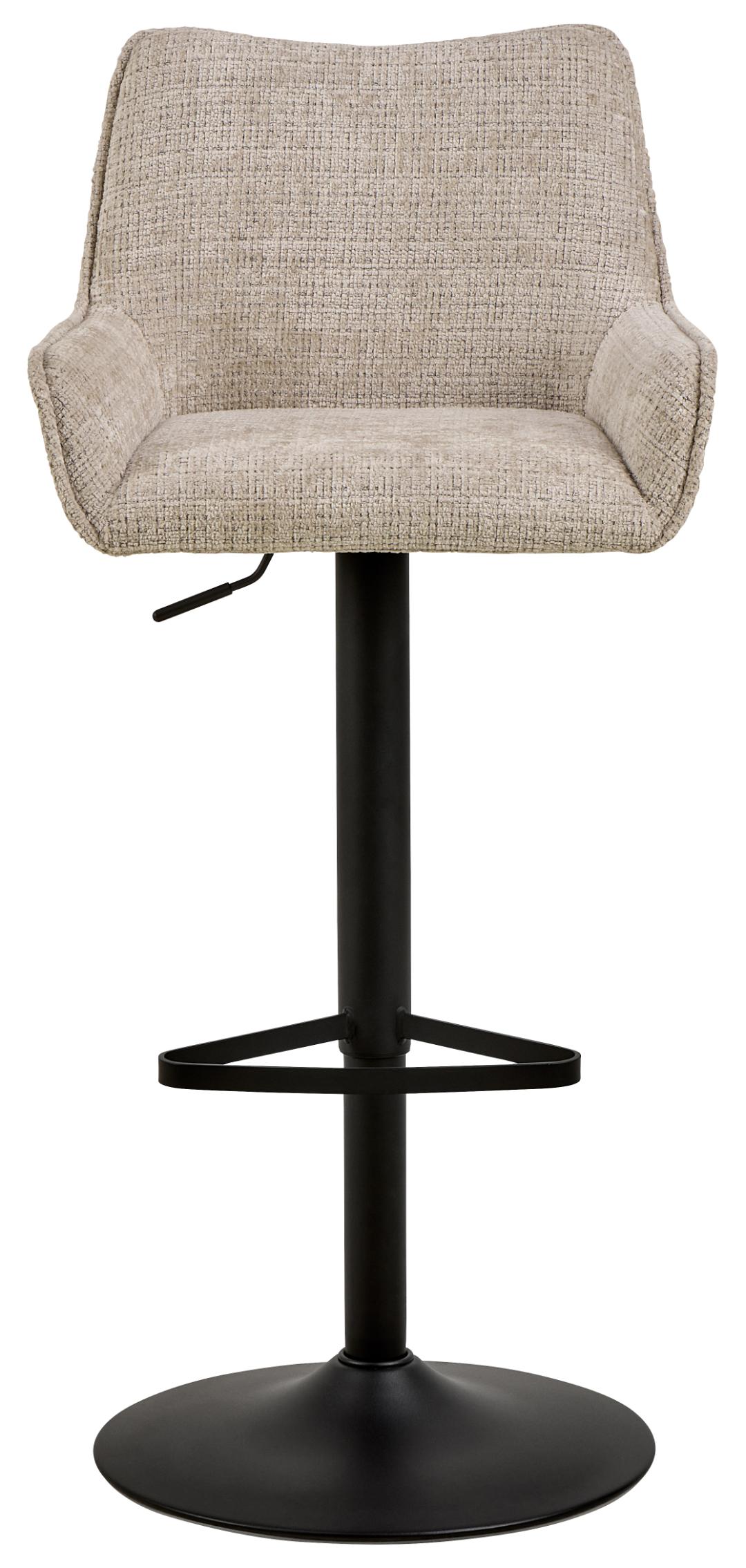 Eddie baro kėdė, Juto kolekcijos audinys, smėlio spalva (4), platėjantis pagrindas – juoda matinė šiurkšti miltelinė plieno danga, su pakoju ir dujiniu pakėlimo mechanizmu.