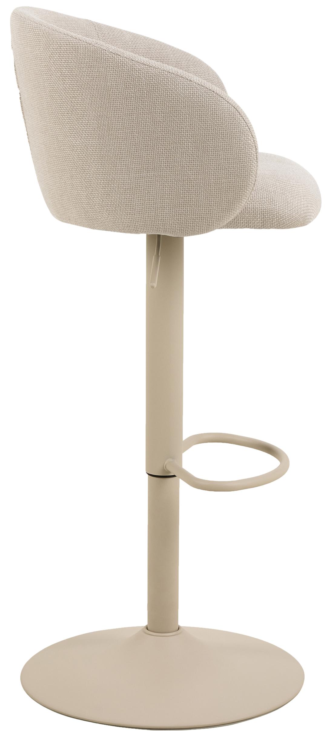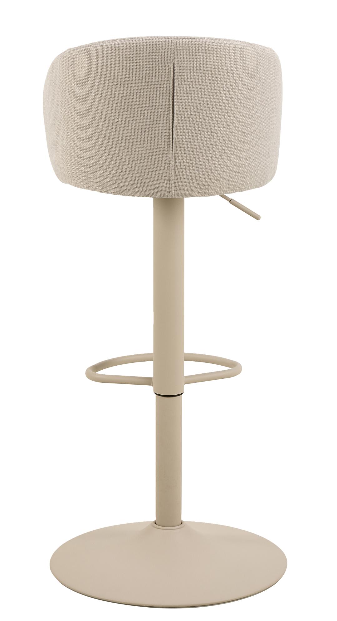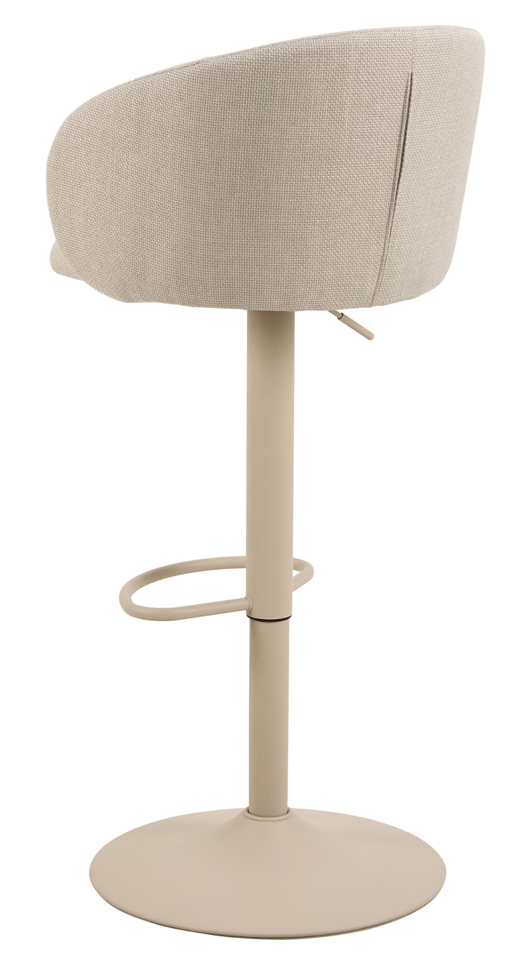 Eleanor baro kėdė, Basel kolekcijos audinys, smėlio spalva (24), platėjantis pagrindas – pilkas šiurkščios faktūros milteliniu būdu dengtas plienas, su trigubais siuvinėjimais, pakoju, dujiniu pakėlimo mechanizmu ir pasukimo funkcija.