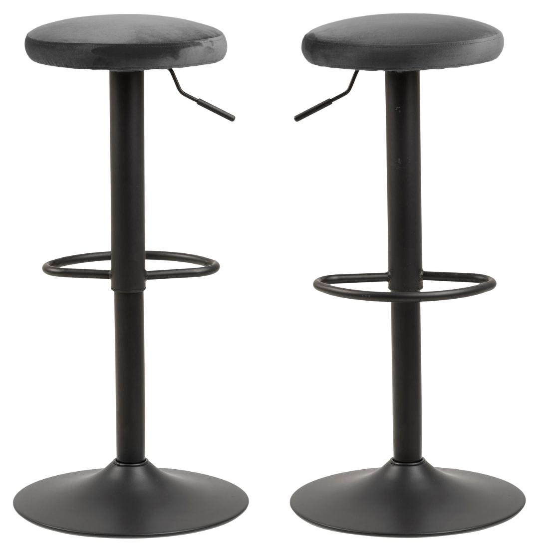 Finch baro kėdė be atlošo, Vic kolekcijos audinys, tamsiai pilkos spalvos (28), platėjantis pagrindas – juoda matinė šiurkšti miltelinė plieno danga, su pakoju, dujiniu pakėlimo mechanizmu ir pasukimo funkcija.