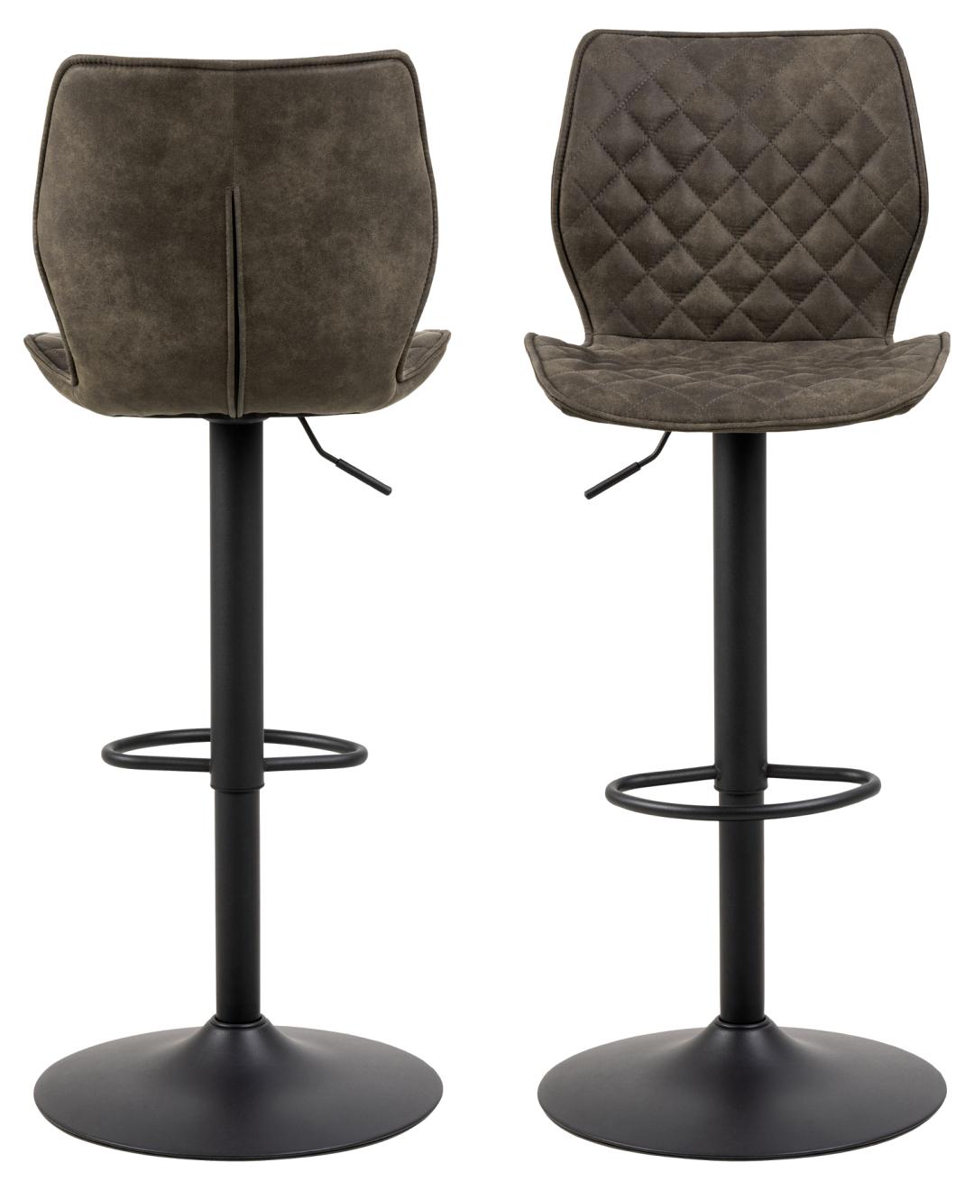 Naomi baro kėdė, Preston kolekcijos audinys, antracito spalvos (96), platėjantis pagrindas – juoda matinė šiurkšti miltelinė plieno danga, su pakoju, dujinis pakėlimo mechanizmas, rombinis siuvinėjimas, pasukimo funkcija, su užtrauktuku.