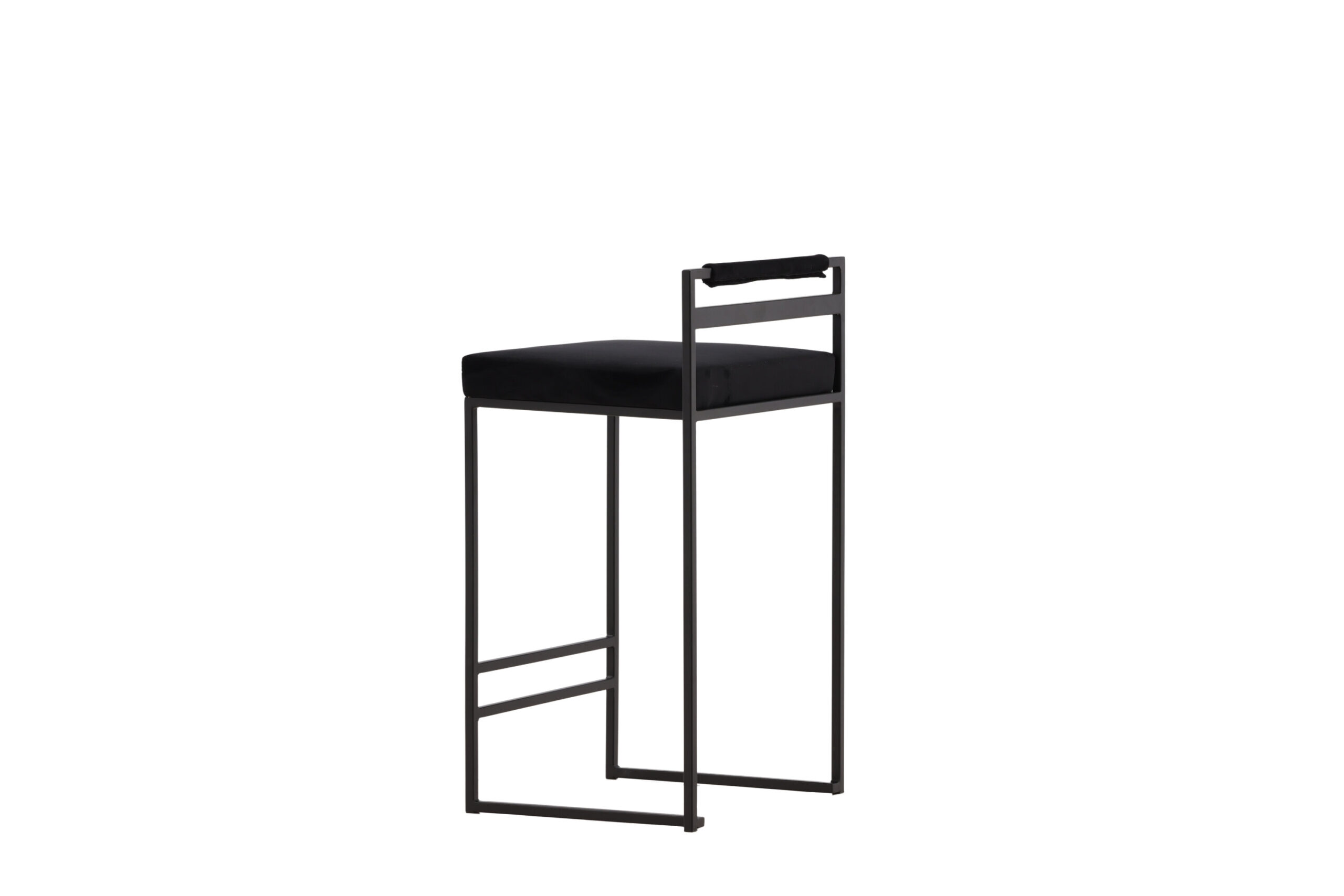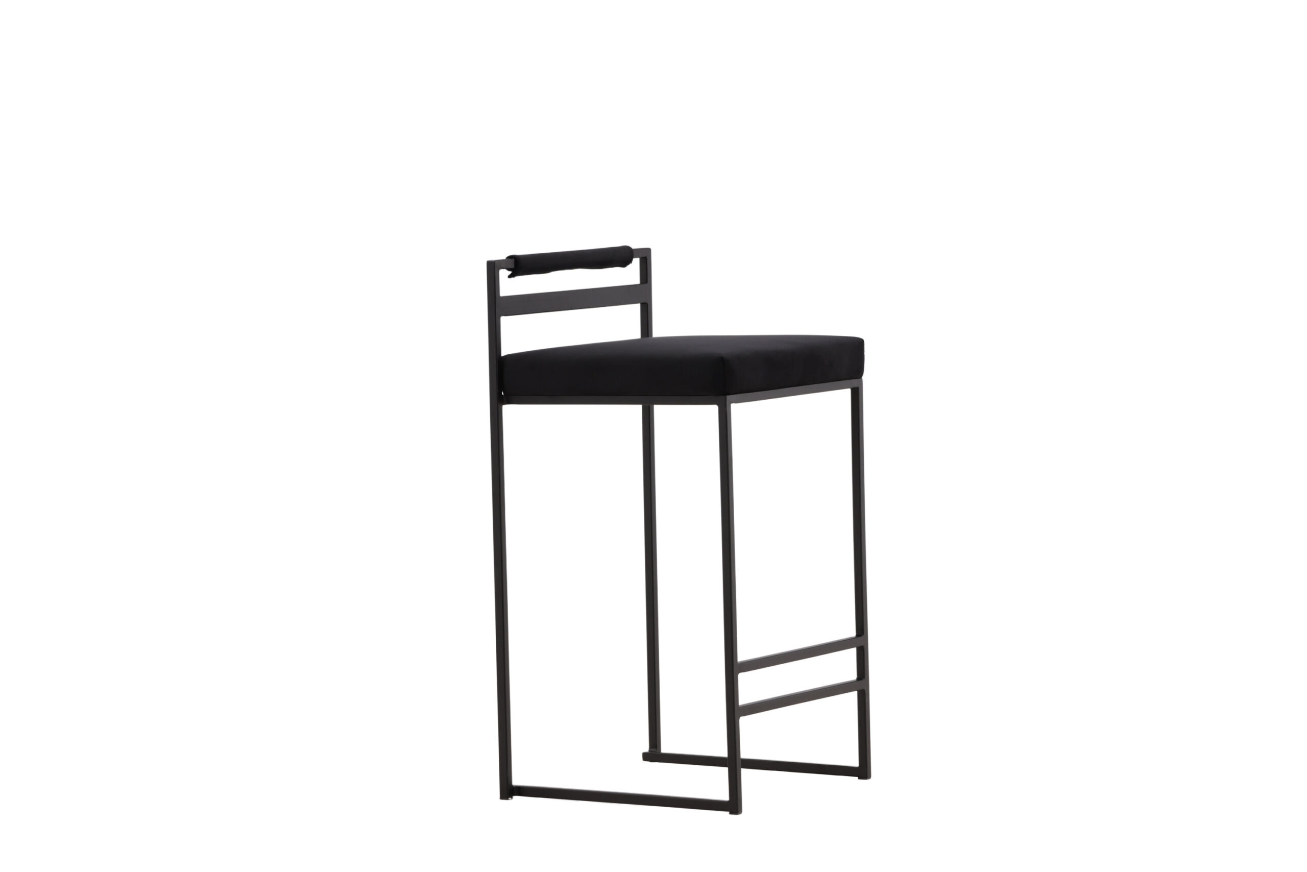 Opelika kolekcijos baro kėdė – nepamirštamas akcentas Jūsų moderniam interjerui! Įkvėpta skandinaviško dizaino, ši kėdė žavi minimalistinėmis formomis ir nesenstančiu stiliumi. Minkšta sėdimoji dalis, aptraukta elegantišku juodos spalvos aksomu, sukuria prabangos įspūdį, o juodo plieno rėmas su žemesne nugarėle ir integruota atrama kojoms užtikrina patogumą. Puikiai dera tiek prie virtuvės baro, tiek prie aukšto valgomojo stalo – šis baldas sujungia estetiką ir komfortą.