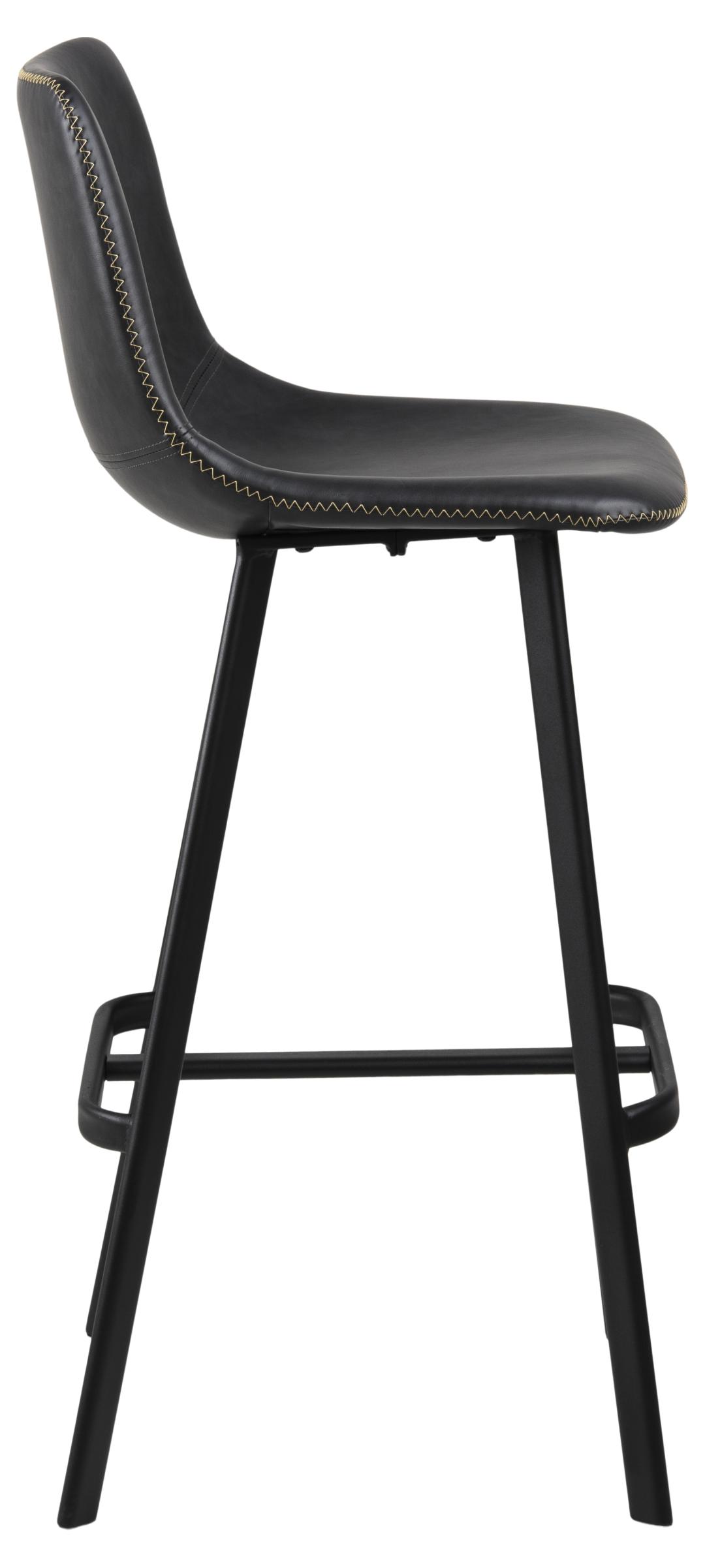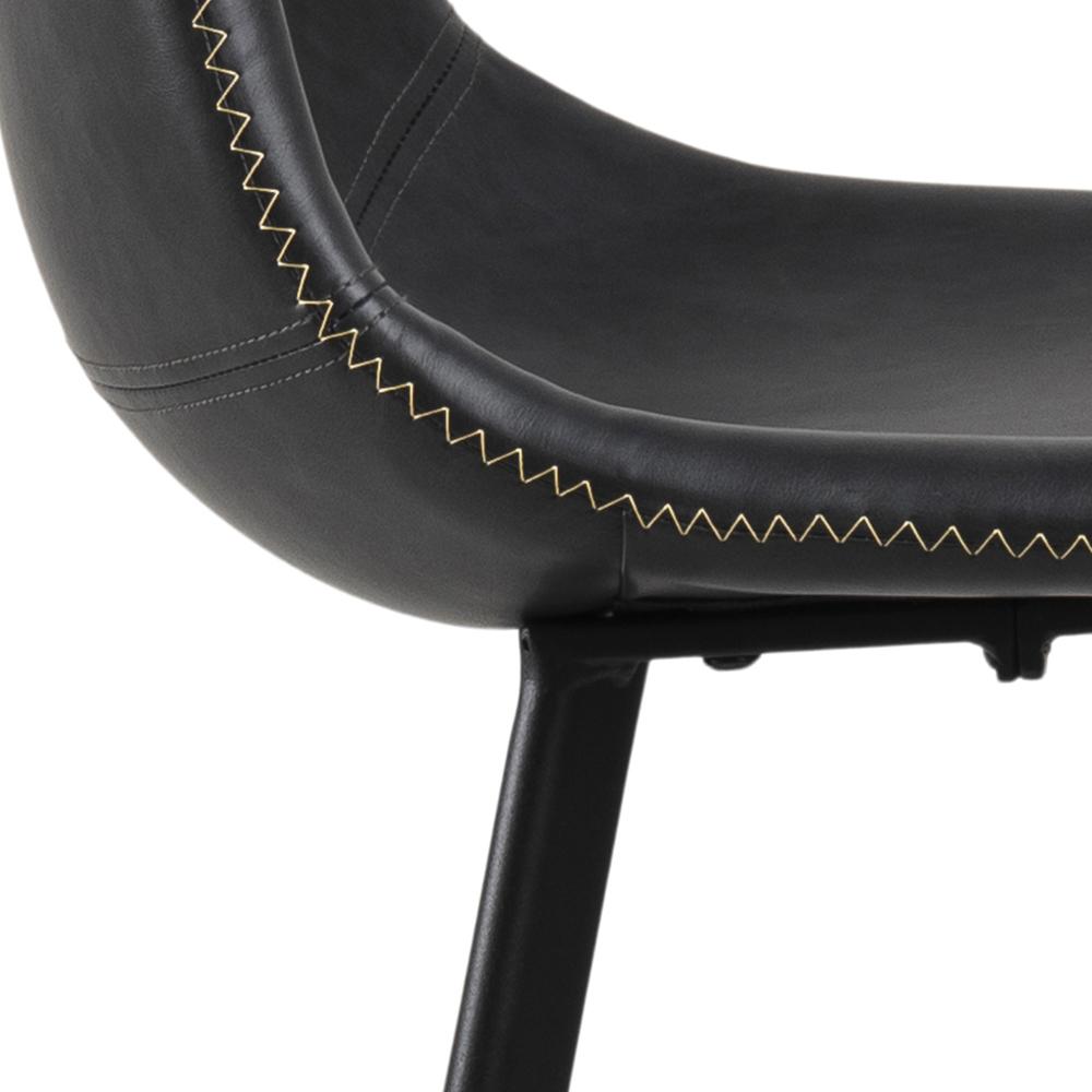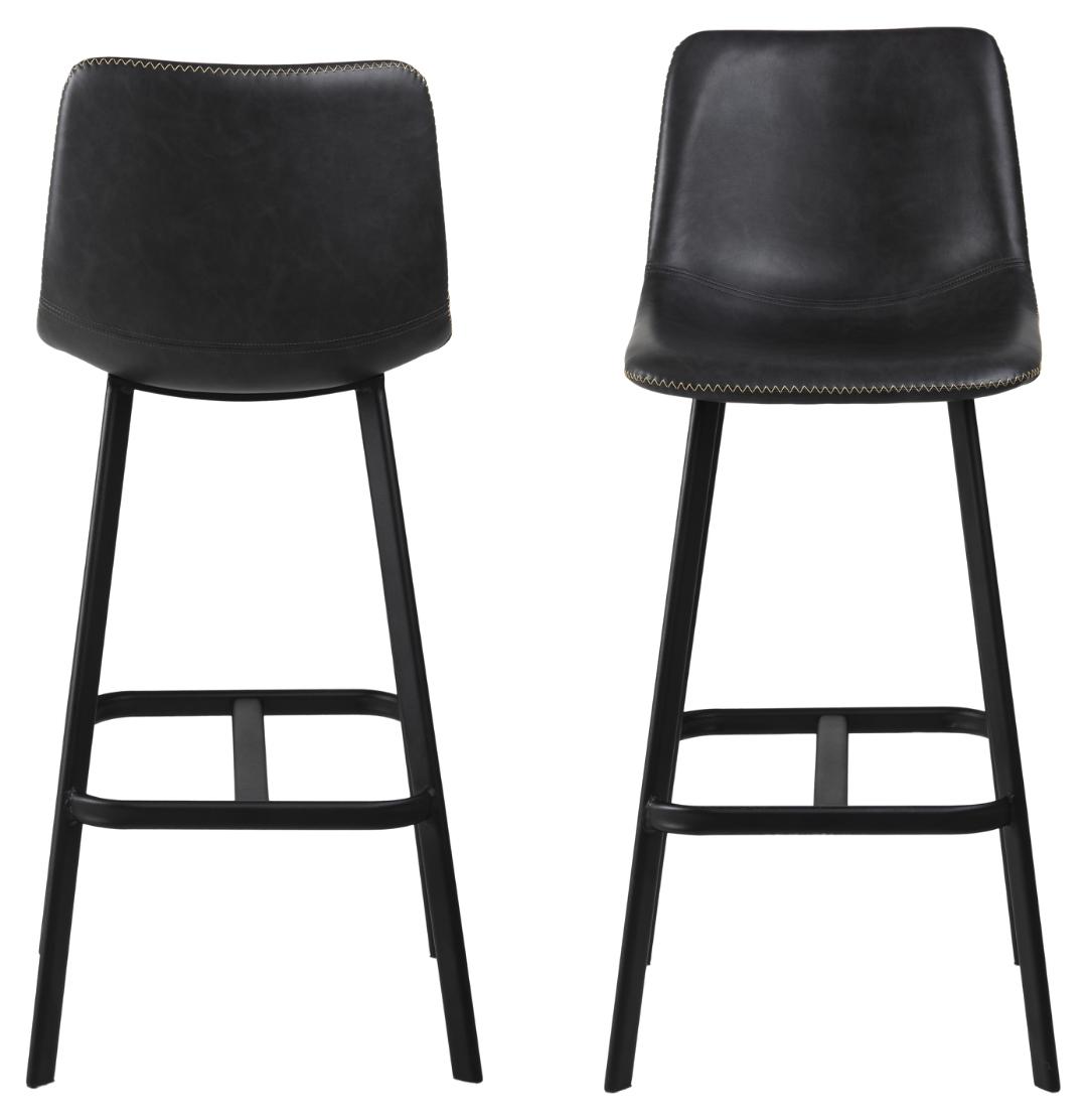 I_Oregon baro kėdė, PU vintage juoda (247), pagrindas – juoda matinė šiurkšti miltelinė plieno danga, su kreminės spalvos siūlėmis, pakoju ir zigzaginiu siuvinėjimu.