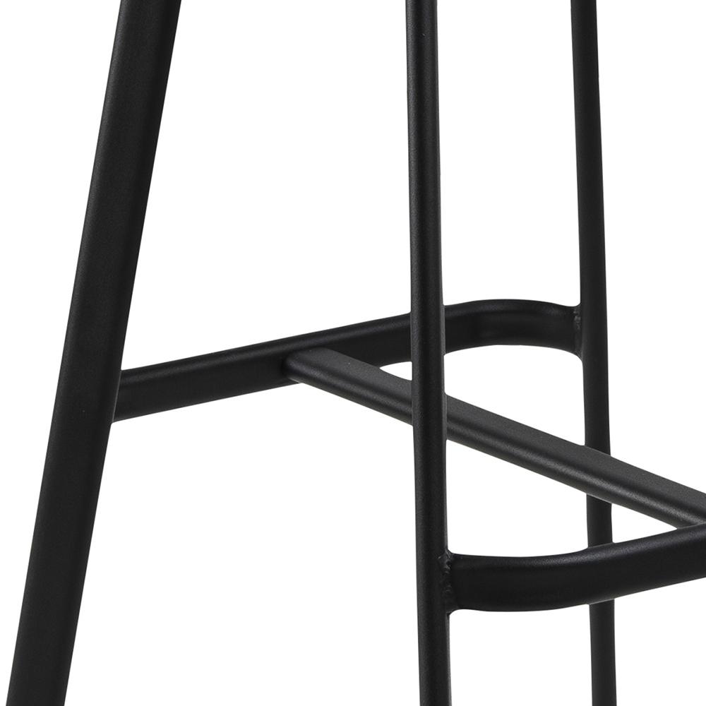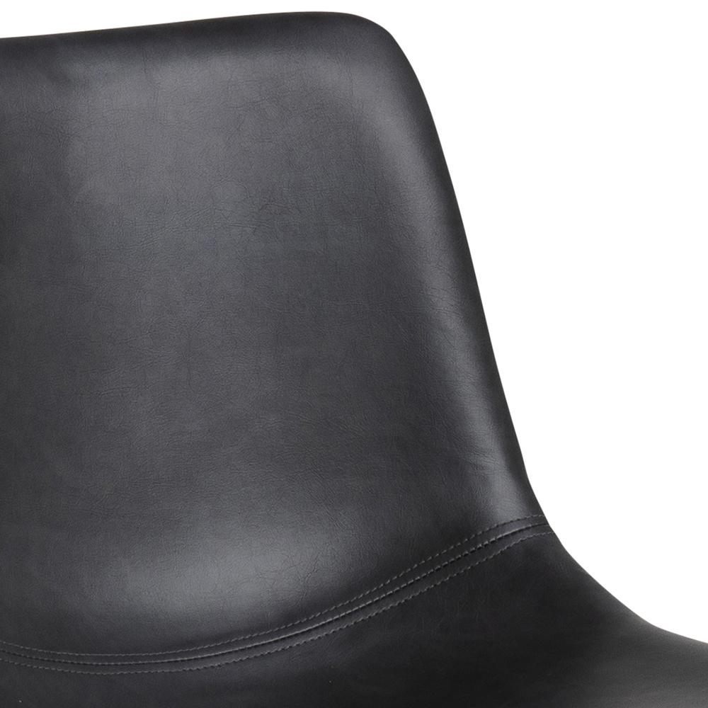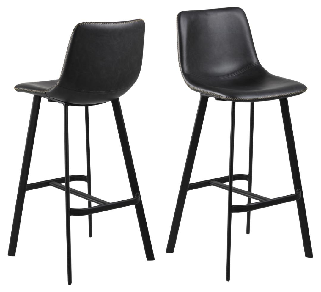 I_Oregon baro kėdė, PU vintage juoda (247), pagrindas – juoda matinė šiurkšti miltelinė plieno danga, su kreminės spalvos siūlėmis, pakoju ir zigzaginiu siuvinėjimu.