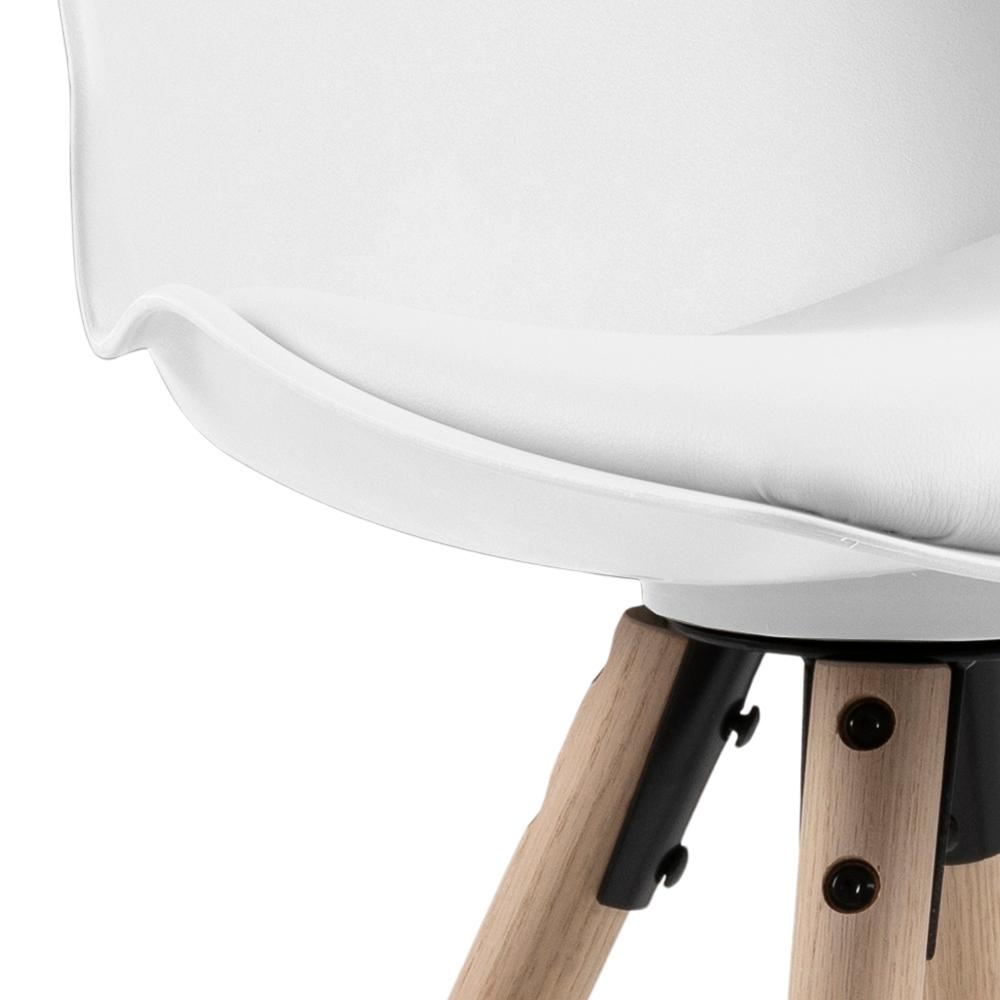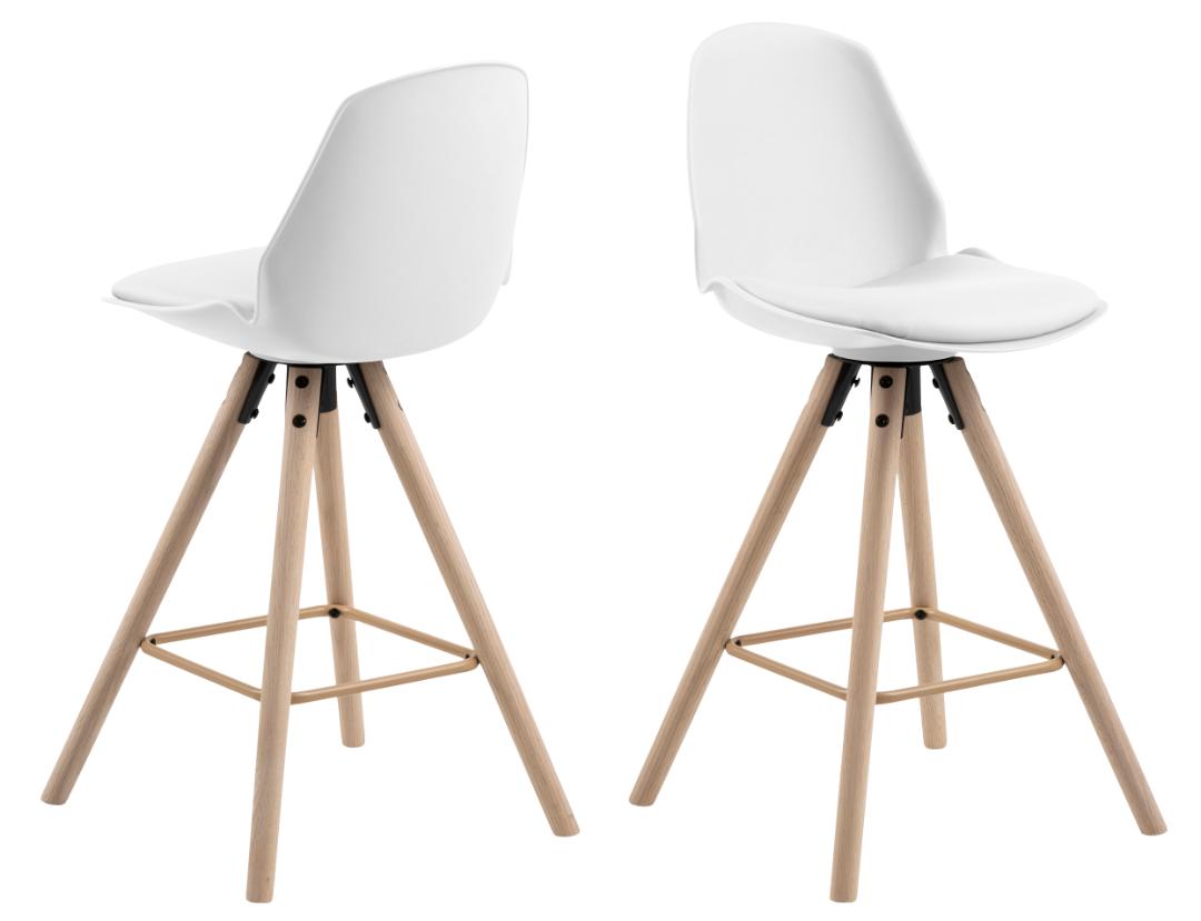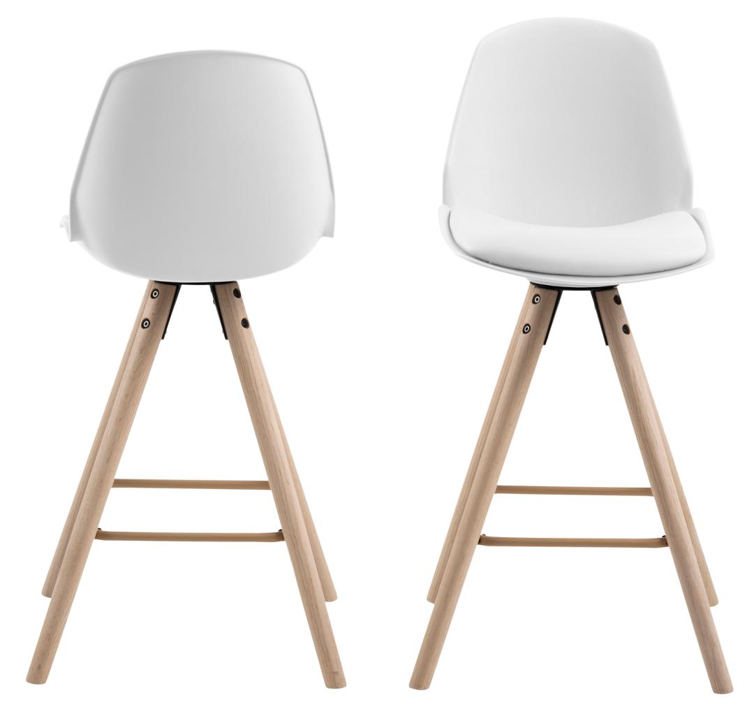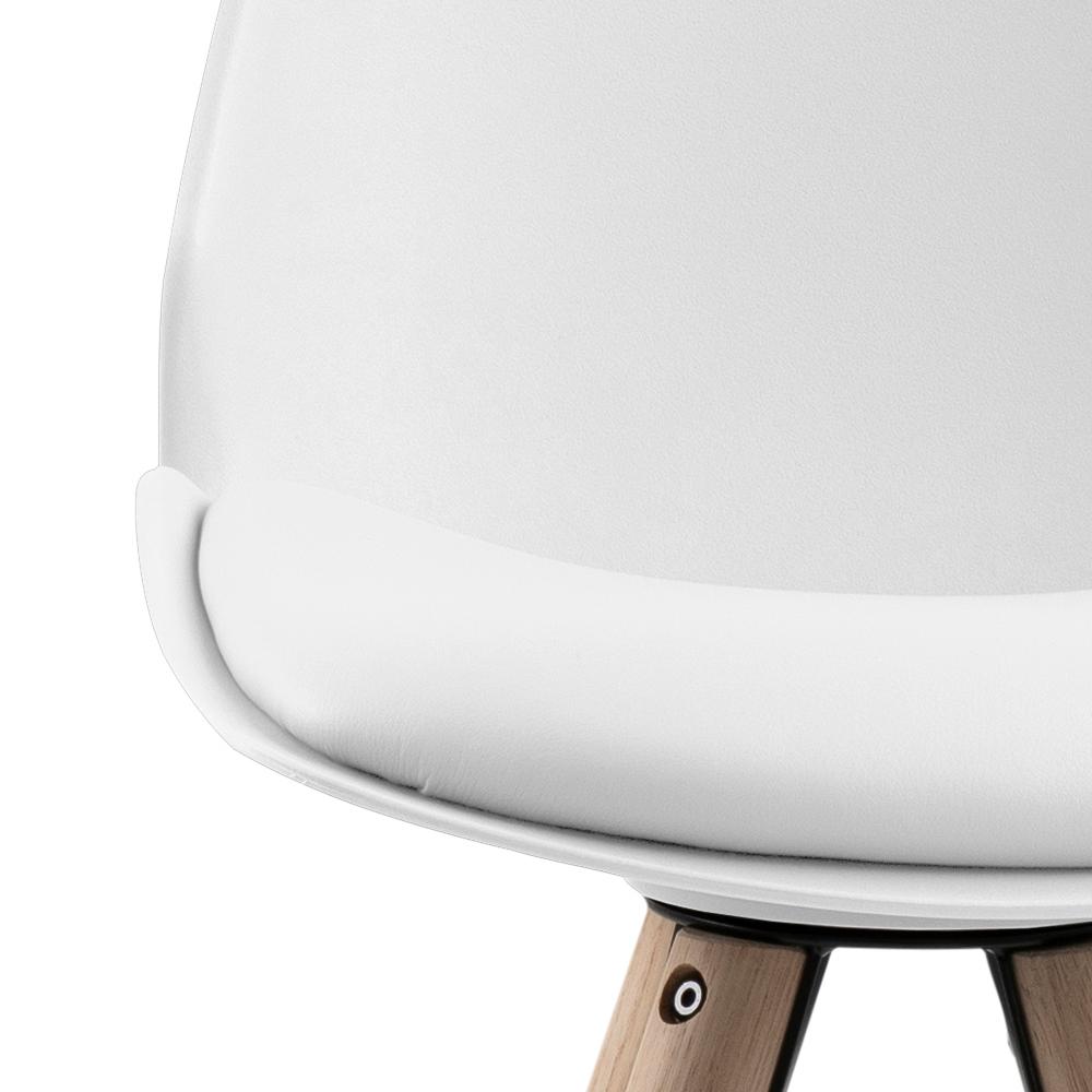 I_Oslo baro kėdė, PU balta DM157 ir matinis baltas šiurkštus polipropilenas, kryžminis pagrindas – baltintas alyvuotas ąžuolas su pakoju.