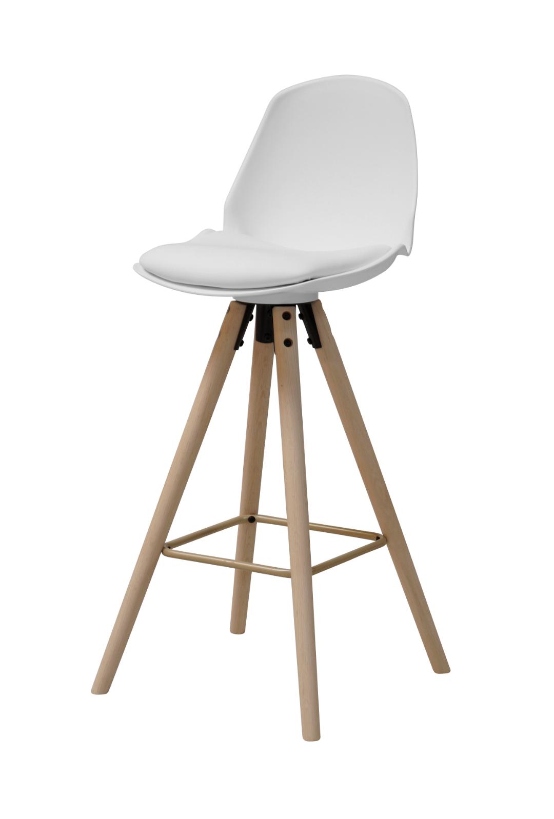 I_Oslo baro kėdė, PU balta (DM157) ir matinis baltas šiurkštus polipropilenas, kryžminis pagrindas iš balinto, alyvuoto ąžuolo su pakoju.