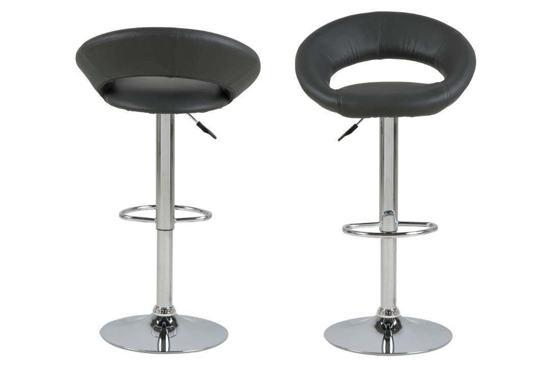Plump baro kėdė, PU pilka oda (GR1 FR), platėjantis pagrindas – chromuoto plieno su pakoju, dujinis pakėlimo mechanizmas ir pasukimo funkcija.