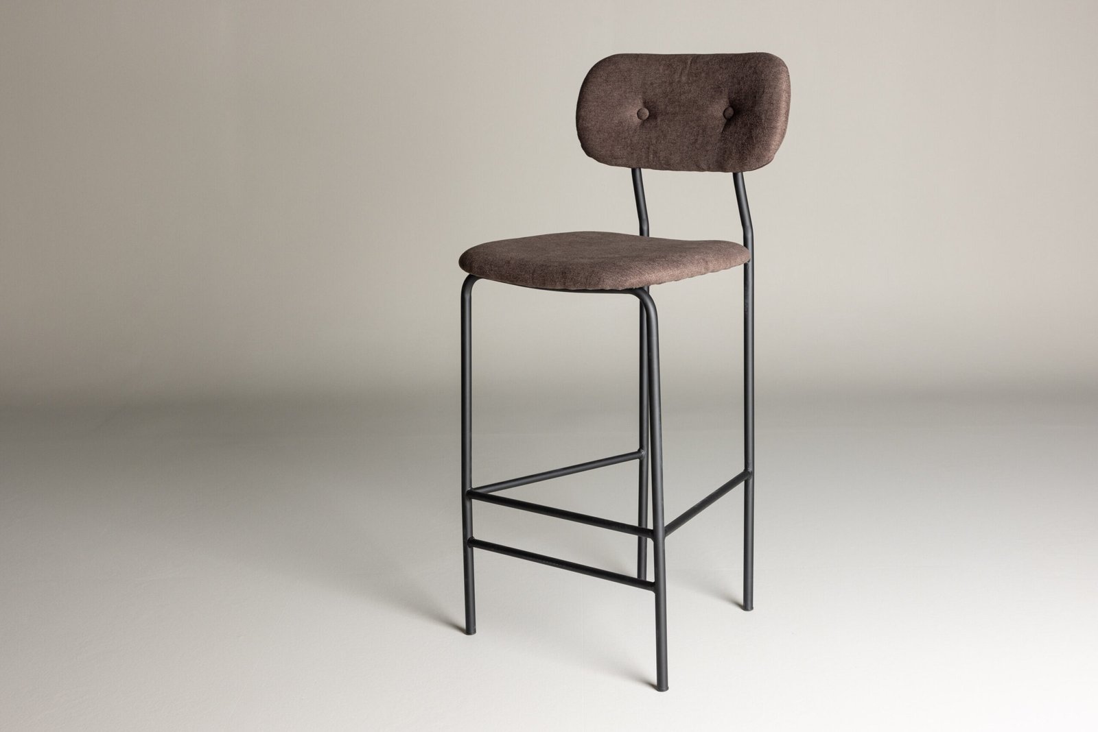 Ralfas - baro kėdė, kopianti į tendencijų sąrašus! Ši skandinaviško dizaino baro kėdė neabejotinai taps patrauklia jūsų namų puošmena. Sėdimoji dalis aptraukta rudu lininiu audiniu, atlošas su giliomis įspraustomis sagomis, rėmas su integruota juodo plieno atrama kojoms. Paprasta kėdė, ant kurios patogu sėdėti. Statykite šalia aukšto valgomojo stalo arba prie baro virtuvėje ir mėgaukitės maloniomis akimirkomis kartu!